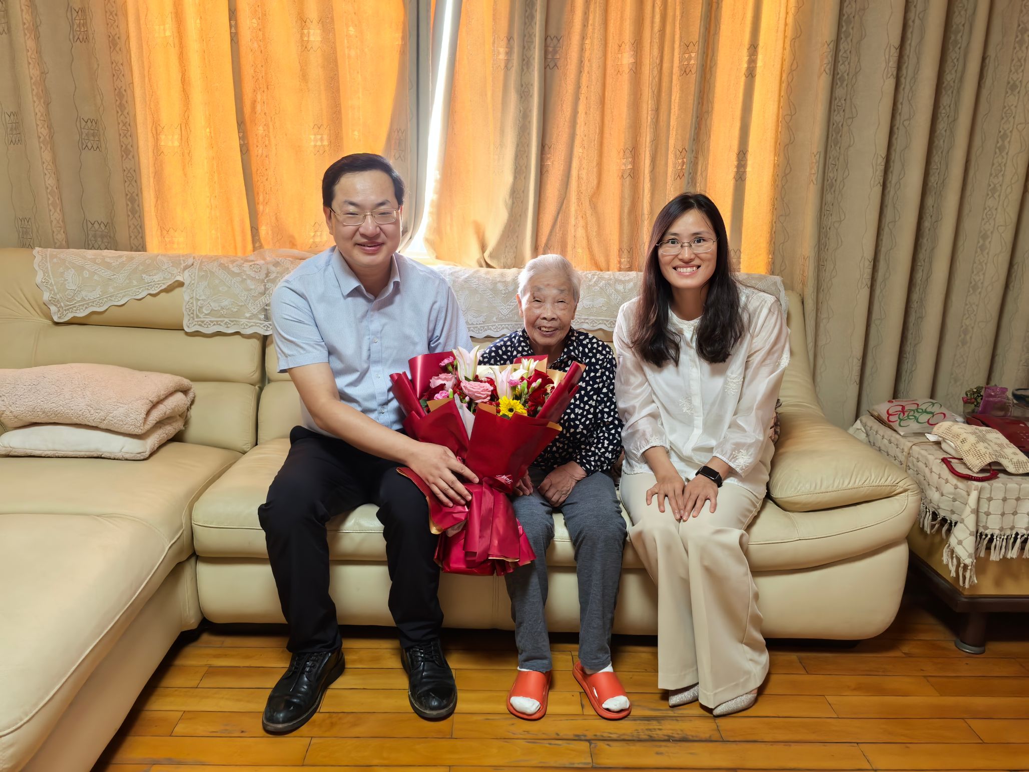 在周素英老师家中,院领导详细了解了周老师的日常生活,特别关心她的身体健康,并嘱咐周老师要保持乐观心态,保重好身体。周老师对学院领导的关怀表示感谢,并分享了她对学校和学院发展变化的感受。