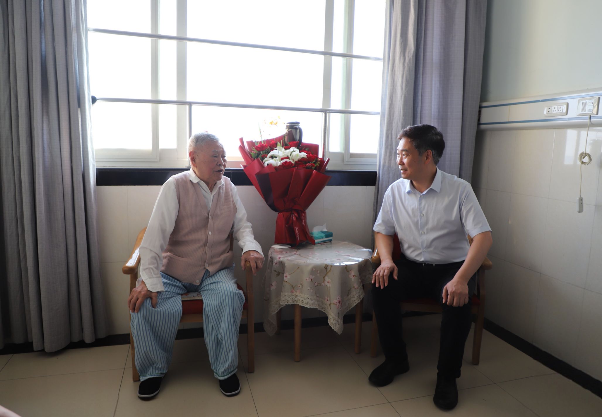 9月27日下午,校党委常务副书记沈壮海带队到中南医院看望学院退休教师严传梅同志,并致以亲切慰问和诚挚祝福。沈壮海强调要大力宣传老干部、老党员的先进事迹,营造学习先进、崇尚先进、见贤思齐的浓郁氛围,引导广大党员干部继承弘扬老同志的优良传统和作风。98岁高龄的严传梅感谢学校对他的关心关爱,现场讲述抗战历史“微党课”,号召全体师生永远跟党走,祝福国家繁荣昌盛。离退休工作处处长李良俊,组织部副部长刘义胜,91黑料