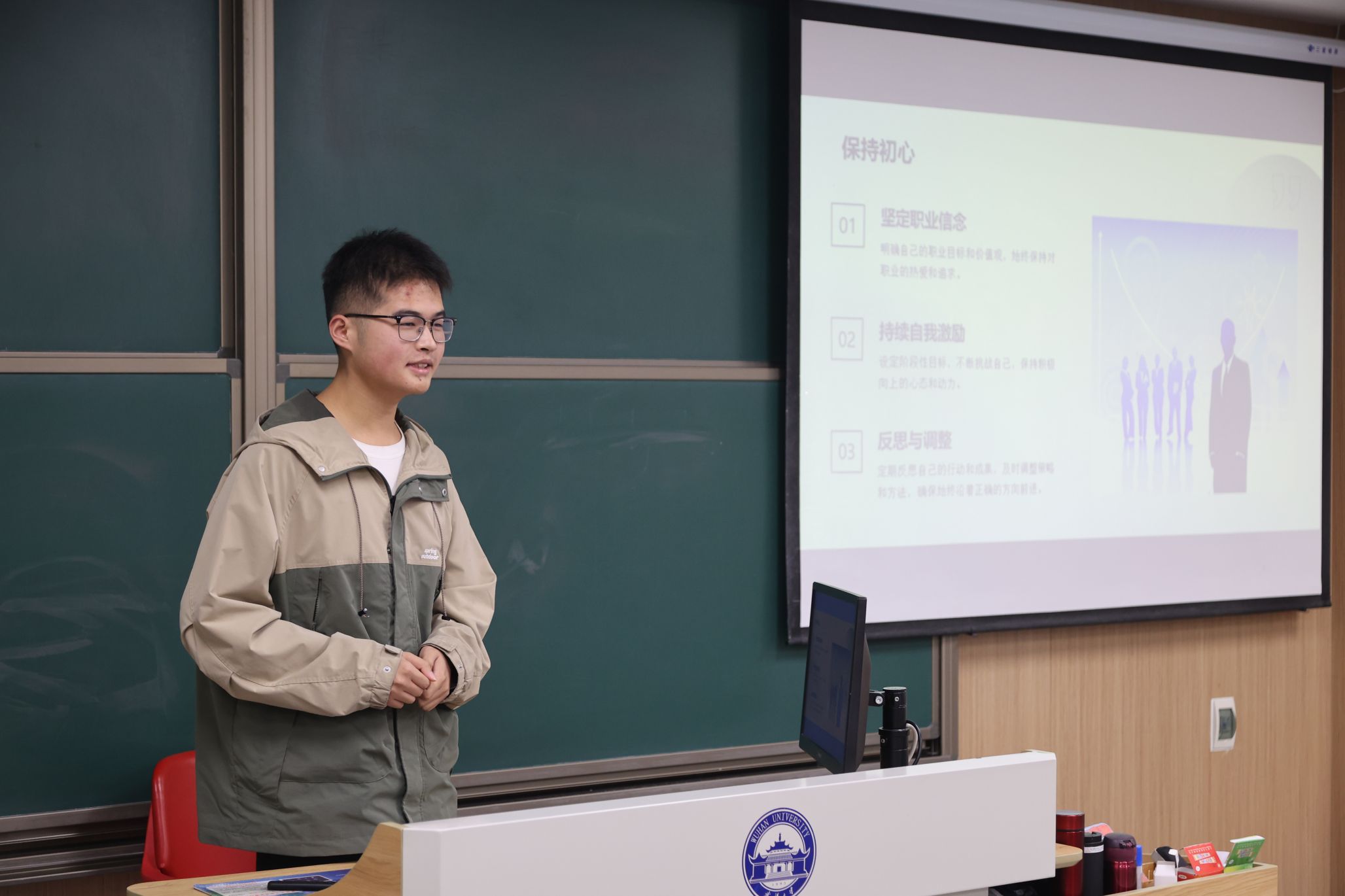 接下来进行成长赛道的比赛,10名本科生讲述了自己职业愿景,通过对自我深度剖析,进行了职业-兴趣-性格等方面的匹配,以自己入校以来的经历为背景,畅想了自己未来的职业方向,并对接下来的短期目标和长期目标进行了规划。
