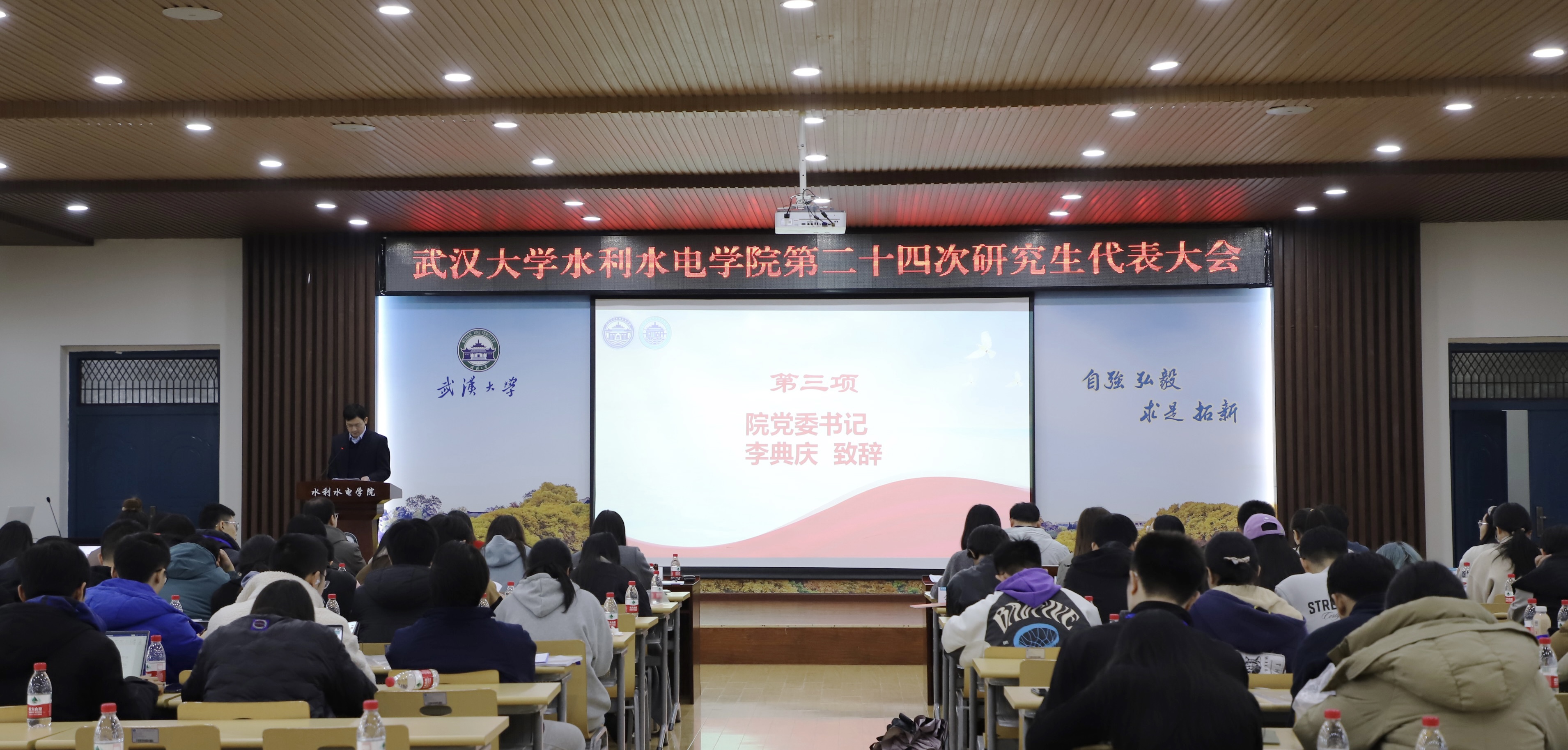 12月4日下午,学院第二十四次研究生代表大会在8328报告厅顺利召开。院党委书记、全国重点实验室主任李典庆,院党委副书记左志香,校团委科技与实践办公室主任吕龙飞,校研究生会主席团成员刘玲伶,学院全体专兼职研究生辅导员及各年级研究生代表共100余人参加了本次大会。