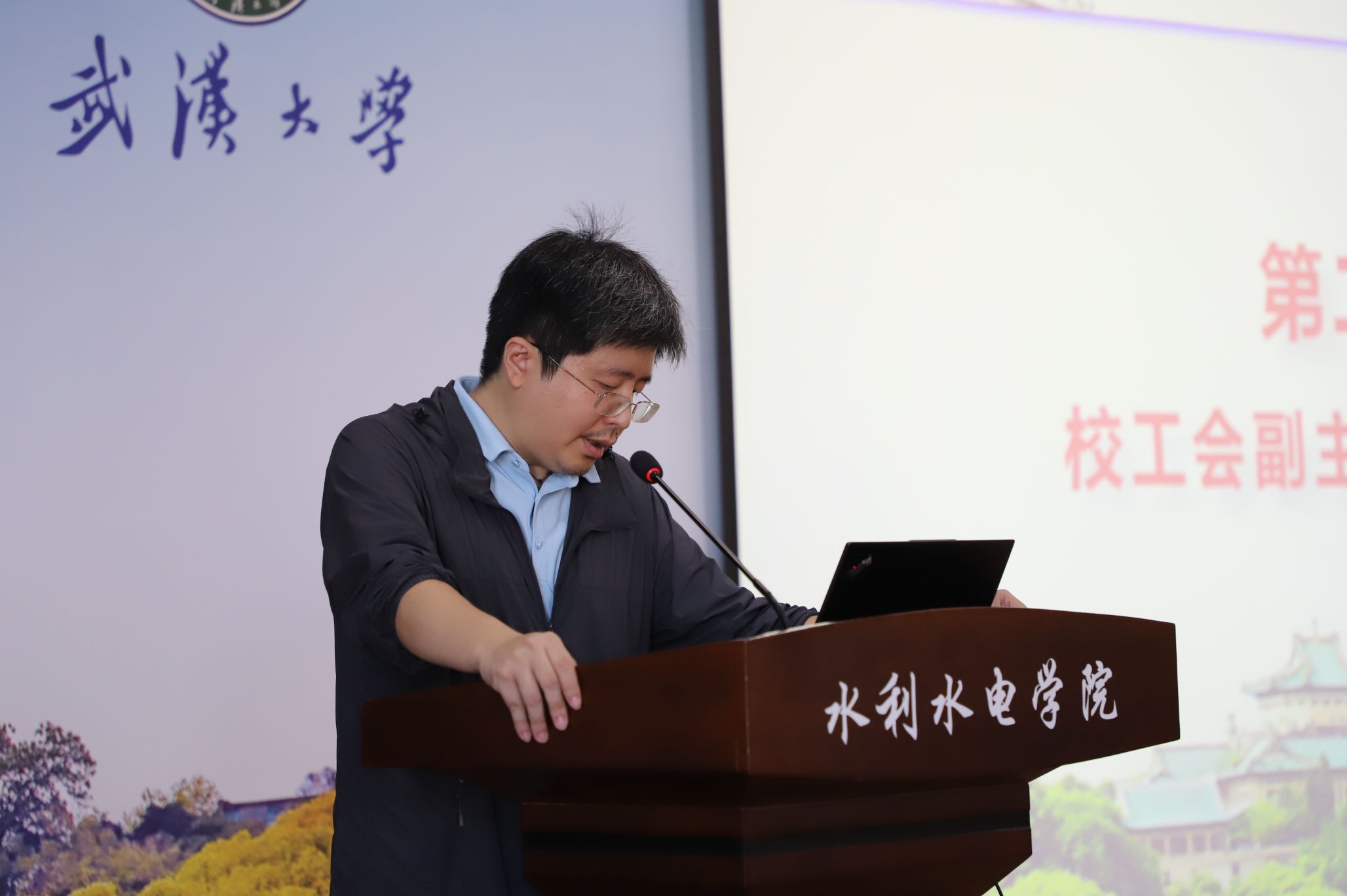会议在庄严的国歌声中开幕。校工会副主席喻丰致辞,代表校工会对此次大会的召开表示热烈祝贺,充分肯定了学院工会在2023年取得的系列成效,并就工会工作提出了三点希望。一是掌信仰之“舵”,坚持凝心铸魂。坚持党对工会工作的领导,带动职工以新气象新担当新作为,推进学院教育事业和科研事业再创佳绩。二是扬实干之“帆”,提升服务能力。认真履行维权服务基本职责,努力为大家做好事办实事解难事。三是驱担当之“桨”,锻造硬核力量。帮助职工学习新知识、增长新本领,拓展成长成才空间,实现集体与个人的共同成长。