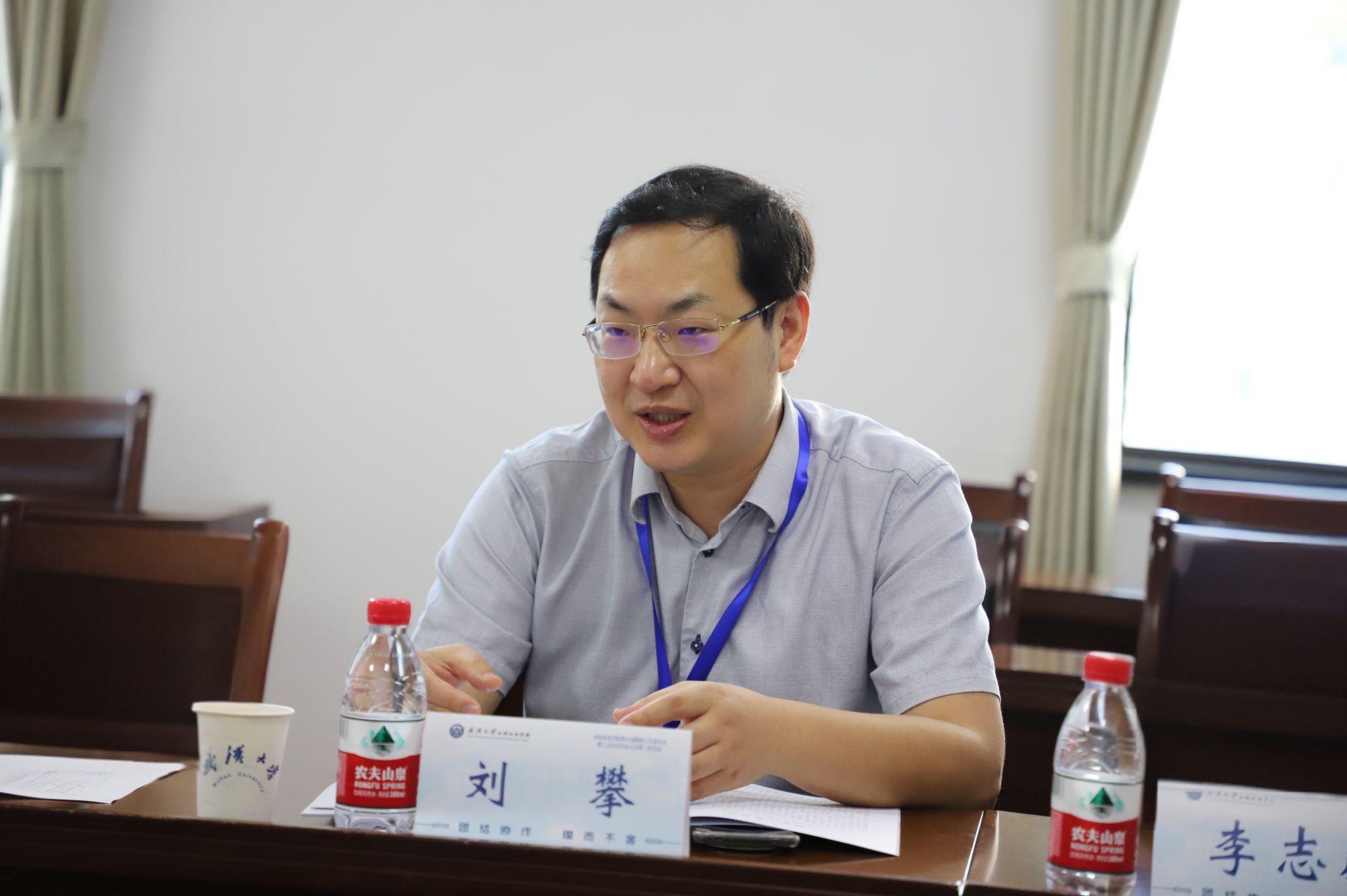 各小组发言代表邱让建、王志远、朱焱、李志威在第二次全体会议中依次分享了本组讨论意见和建议。