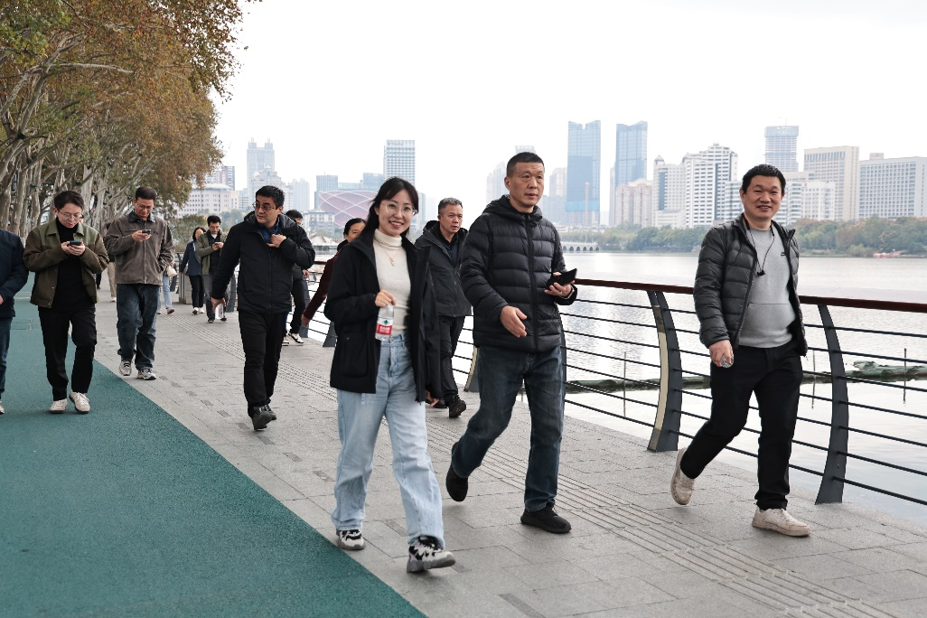 本次行走主路段设定在东湖绿道,自文澜门经洪波门、凌波门至扬波门段,全程约5公里。大家身着运动衣、脚蹬运动鞋,精神抖擞地迈着稳健的步伐向前出发。