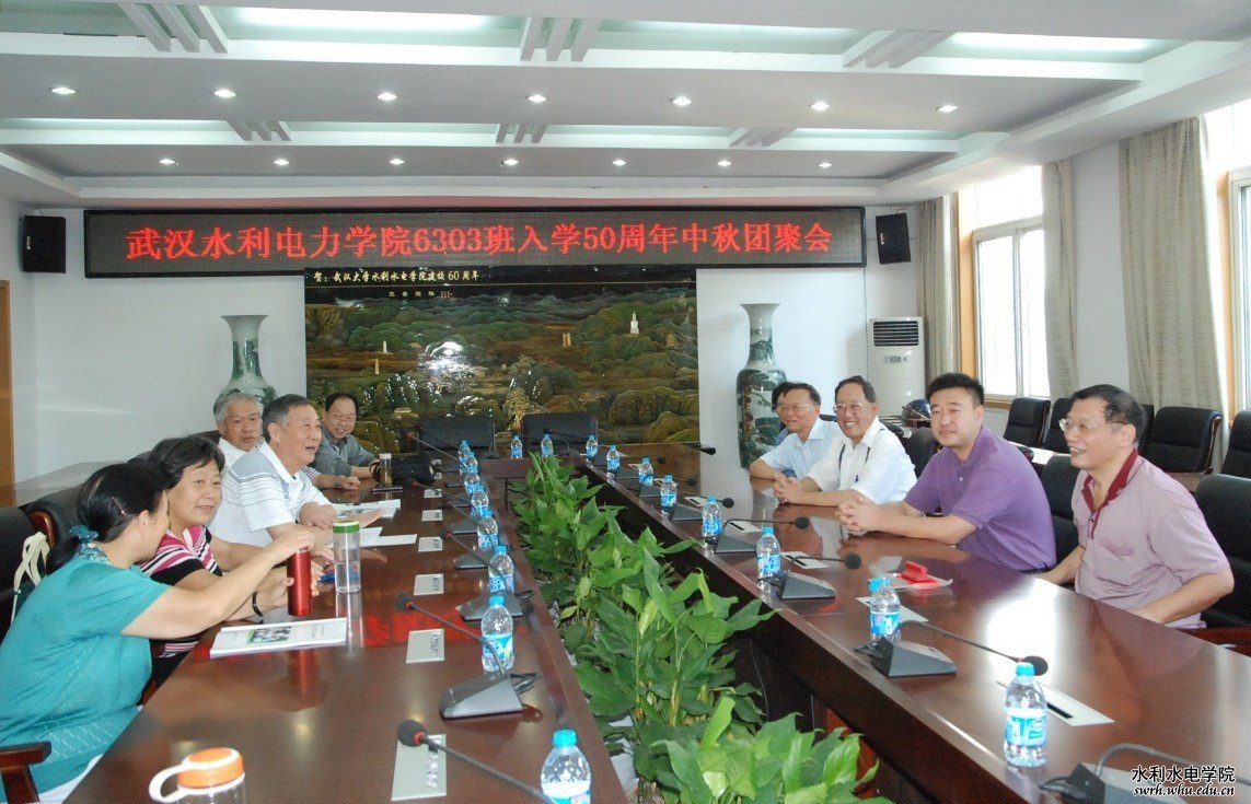 中秋佳节之际,武汉水利电力学院6303班入学50周年中秋团聚会于9月19日在院二楼会议室成功举办。水电学院书记屈文谦,6303班16位校友等出席了团聚会。