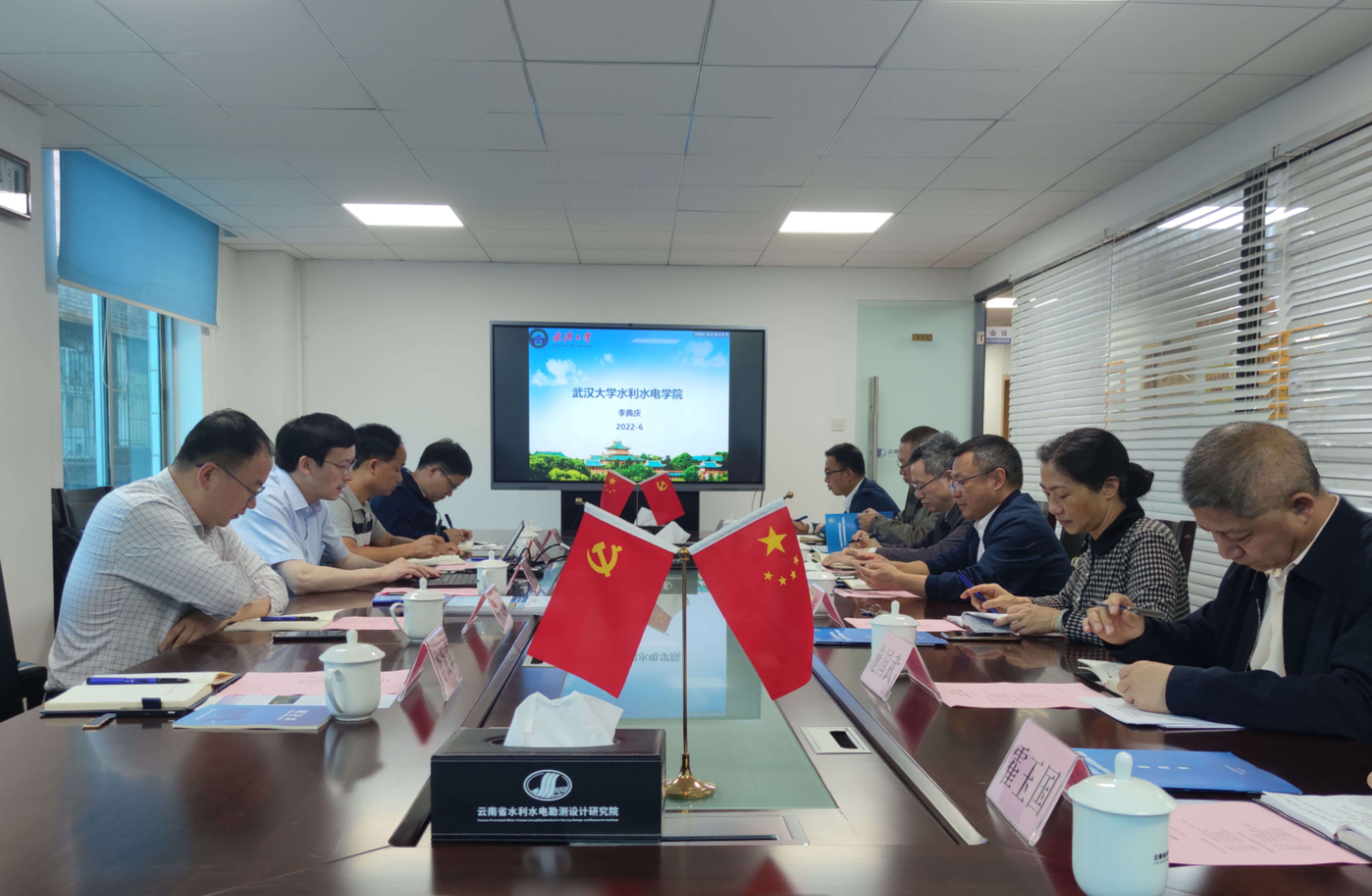 副院长李典庆教授一行到云南省水利水电勘测设计研究院(以下简称云南省院)访问交流。云南省院院长周云、副院长兼总工王静、院副总工顾世祥出席会议,学院陈明教授、杜文琪教授、王顺教授,云南省院办公室主任施国武、人事处处长陈海春、设计一分院院长霍玉国等参加座谈。