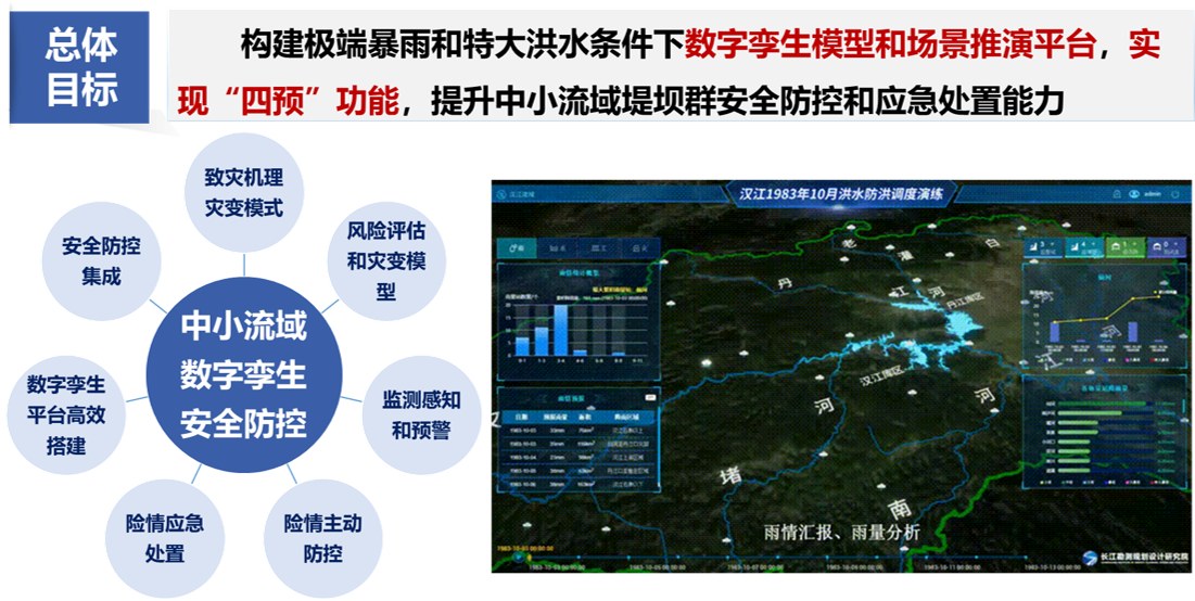 在“重大自然灾害防控与公共安全”重点专项中,周伟教授获批“中小流域堤坝群致灾的数字孪生模型与防控项目,获1900万元经费资助。项目聚焦极端暴雨和特大洪水下堤坝群致灾机理和灾变模式和乏信息条件下堤坝群灾变风险识别评估模型与方法两大关键科学问题,旨在提升中小流域堤坝群安全防控和应急处置能力,突破灾变过程数字孪生模拟技术、多要素监测感知与数据传输技术、险情快速处置材料与移动便捷抢险技术、物理和数字流域动态实时信息交互与深度融合技术、模块化的数字孪生平台高效搭建和快速响应技术等关键技术难题,最终形成集“致灾机理和灾变模型、多要素监测感知与预警、复杂险情防控和应急处置、四预支持的数字孪生平台高效搭建”等主要成果的中小流域堤坝群致灾数字孪生模型、安全防控技术及全链条解决方案,研究成果将在3个典型中小流域开展示范应用。