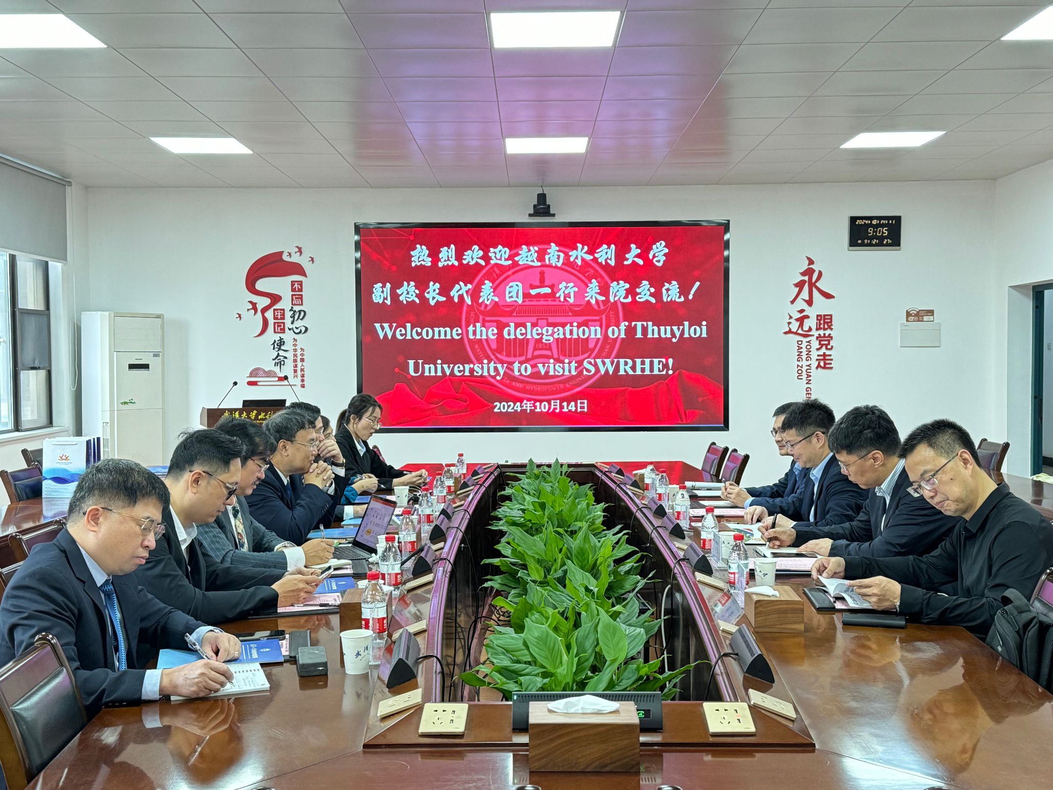 10月14日,越南水利大学副校长阮景泰(Assc. Prof. Nguyen Canh Thai)一行九人来访。学院副院长(主持工作)刘攀、副院长伍靖伟、喜马拉雅水电研究中心主任钱忠东、水利系主任管光华、国际水利水电研究中心主任董斌、副主任杨磊参加了此次会议及实验室参观。会议由伍靖伟主持。
