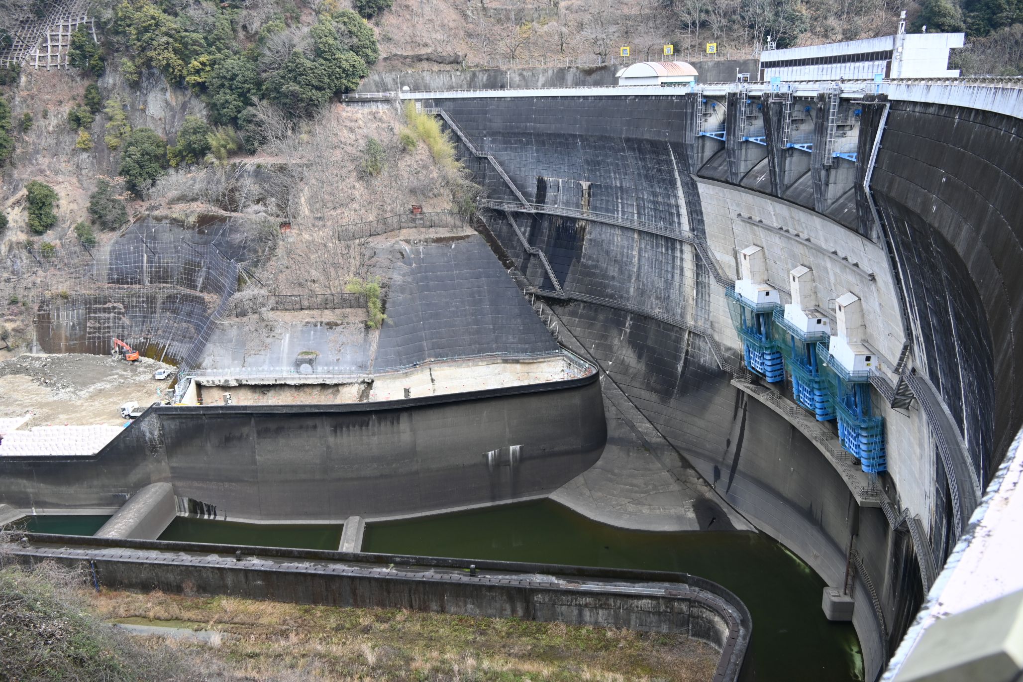 日本琵琶湖(Lake Biwa)是日本最大的淡水湖,湖泊面积达670km²,贮水量275亿m³,其综合治理一直是日本政府和地方当局的重点工作。为抵御洪水灾害,琵琶湖流域构建了“分级调控”体系:上游通过天濑大坝和濑田川洗堰控制泄洪流量,下游则以淀川堤防抵御洪水倒灌。1月22上午,两校师生考察了天濑大坝,京都大学小柴孝太老师介绍了大坝的基本情况。天濑大坝位于宇治川,坝下游淀川、桂川、木津川等多条支流相汇后注入大阪湾,致使下游地区长期深受洪水灾害困扰。天濑大坝在淀川流量较大时可控制下泄流量至160 m3/s,从而减小下游防洪压力。小柴老师介绍,由于坝后回水区域形似凤凰,故得名“凤凰湖“,以凤凰湖为下水库,在喜撰山上修建了上水库,进行抽水蓄能发电,上下库高差达200余米。