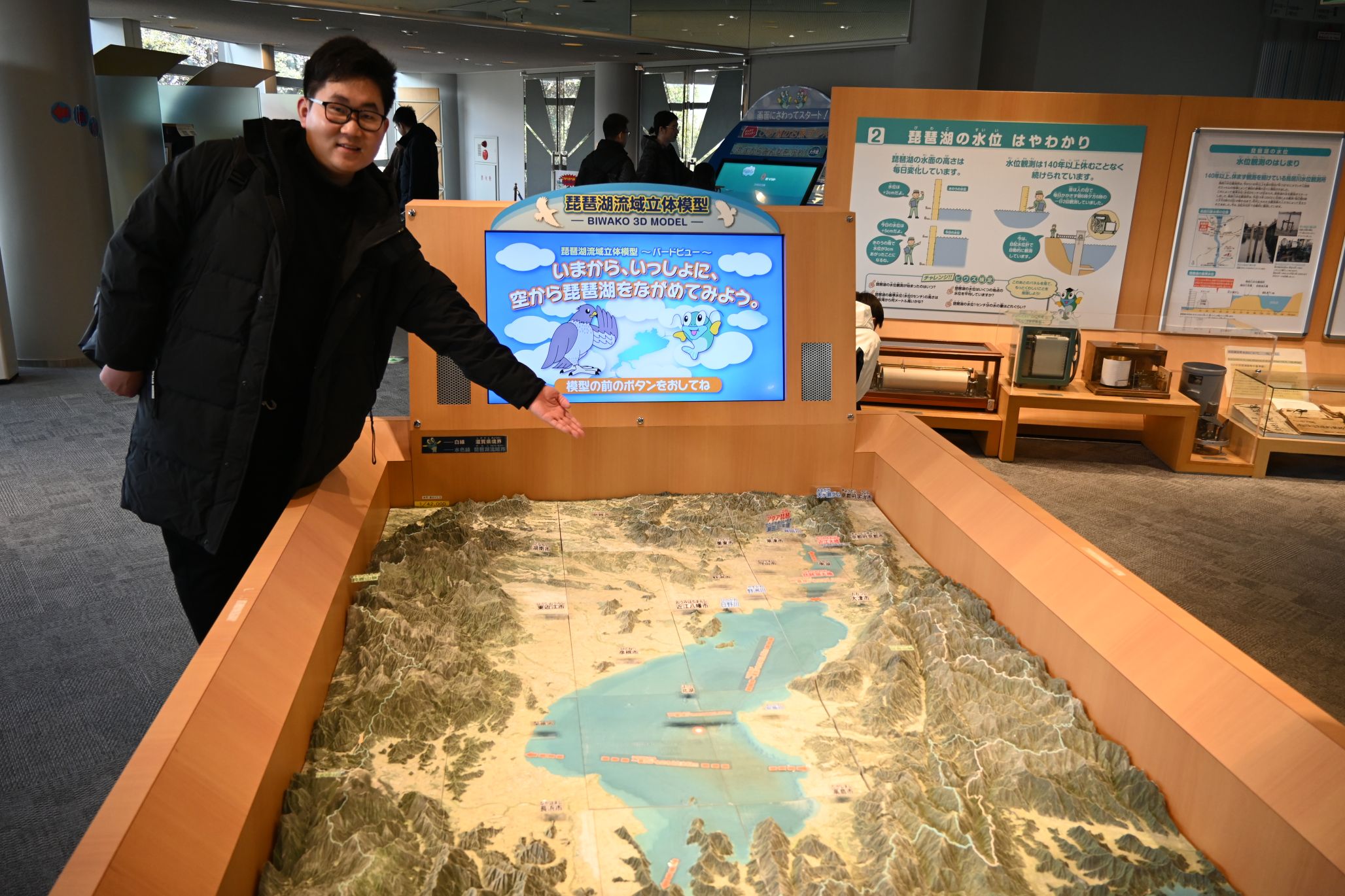1月23日上午,实践队前往琵琶湖开发综合管理所,听取了所内领导及工作人员关于琵琶湖治理的报告。前期实践队成员已了解了琵琶湖在防洪方面的举措,今天进一步学习了琵琶湖水资源管理方面的相关措施。工作人员从“治水”、“利水”、“环境”三个主题进行讲解,让实践队员感受到只有在技术手段、规划制度和公众参与等方面形成合力,才能有效应对水资源管理中的复杂问题。此外,在介绍琵琶湖水资源调度时,张小峰老师带领同学们进行了一个简单的计算,每年大致12亿m³的琵琶湖蓄水需要供给日本关西地区,这占琵琶湖总蓄水量的20%左右,在干旱情况下,保障供水是极具挑战的。