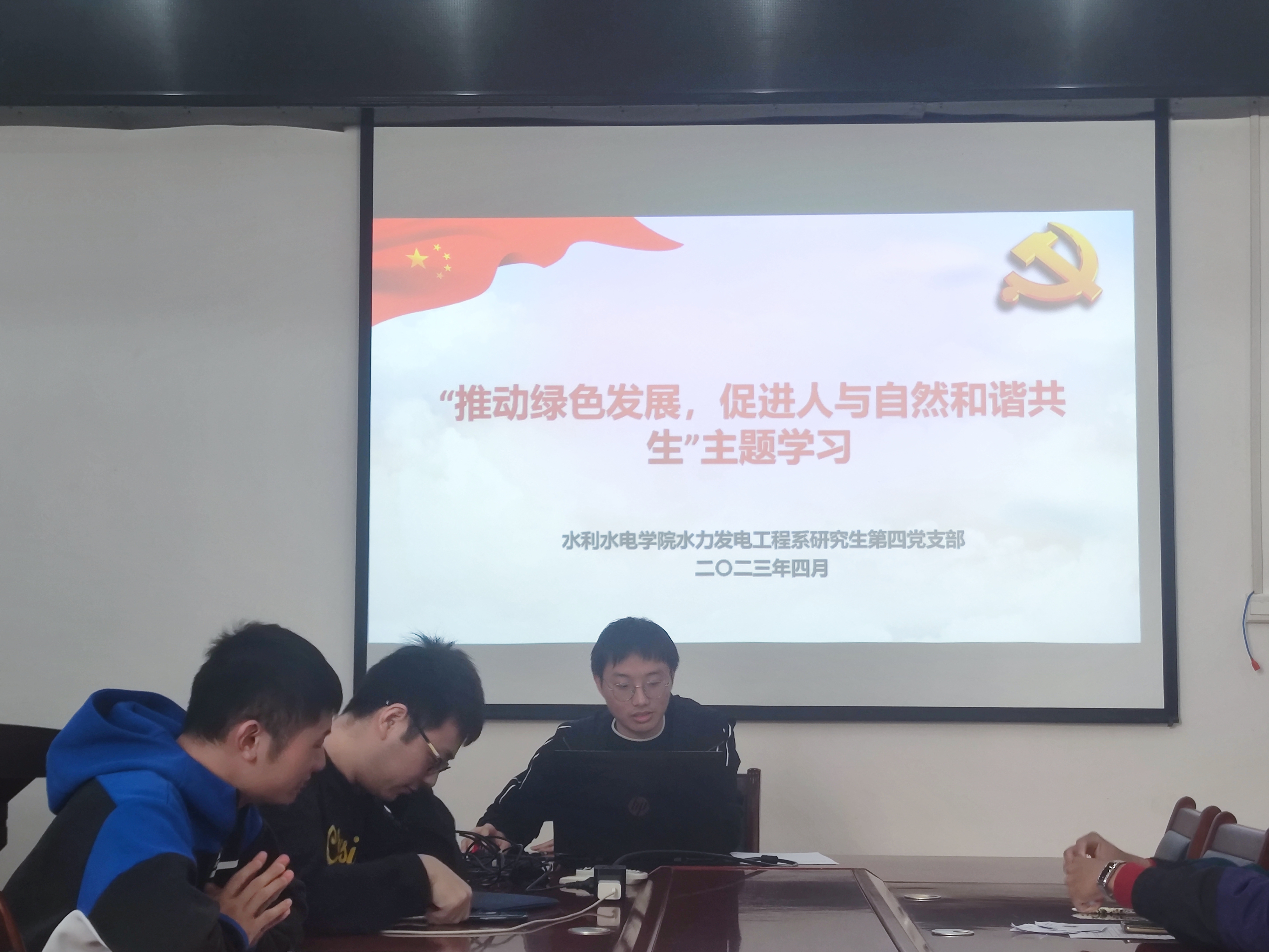 水力发电工程系研究生第四党支部于工学部八教8111举行四月份组织生活会,会议内容包括孔令魁同志的转正大会以及赵逢泽同志的发展大会,此外党支部成员还深入学习贯彻习近平新时代中国特色社会主义思想和党的二十大精神,认真学习以“推动绿色发展,促进人与自然和谐共生”和“缅怀先烈事迹,继承革命精神”为主题的党课。本次会议由彭涛同志主持,到场同志28人,其中党员同志26人,正式党员22人,预备党员4人。