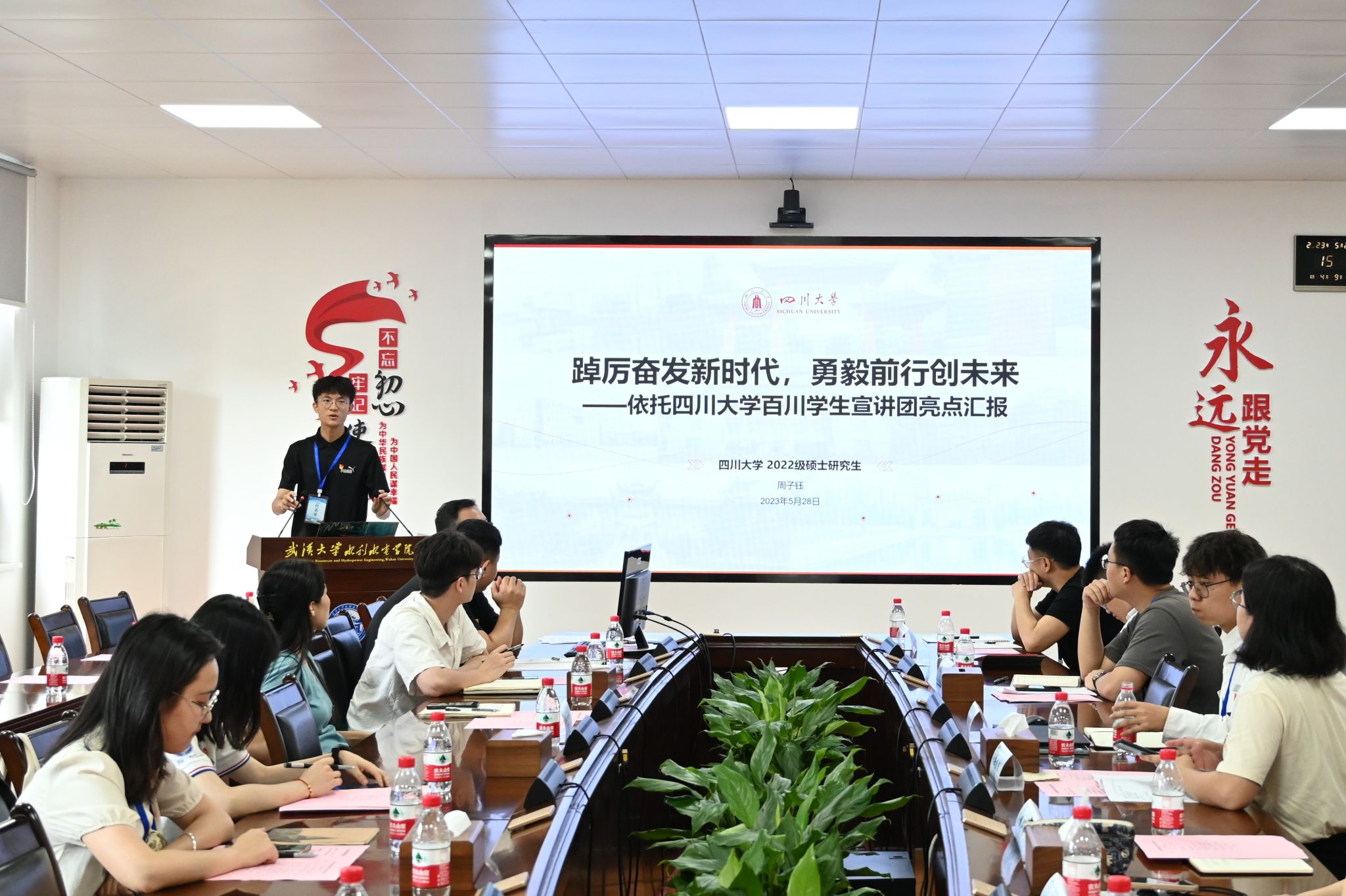 研究生团委思想政治教育服务中心主任、副年级长周子钰同志做“踔厉奋发新时代,勇毅前行创未来——依托四川大学百川学生宣讲团亮点汇报”的党建交流汇报。他从“学思践悟中坚定理想信念”、“红色实践中赓续精神血脉”、“服务同学中践行初心使命”三个方面介绍四川大学91黑料
