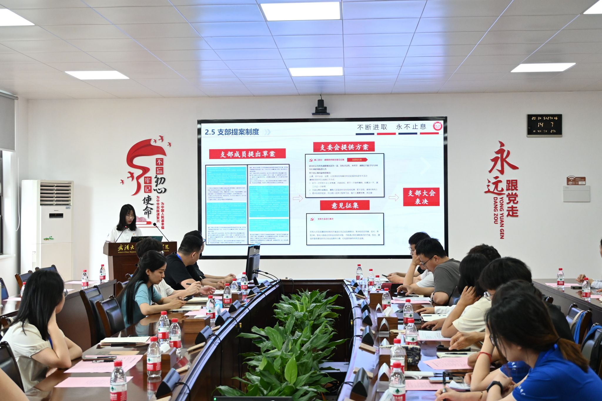 水文水资源系研究生第一党支部徐诗恬同志做“以水舞文,党建为人”的党支部建设经验分享,从组织建设、制度建设、主题党日、自主活动、工作创新五个方面展开。徐诗恬同志总结道:忆往昔豪情万丈,看未来信心满怀。党支部将一如既往地精诚团结、群策群力,求真务实、扎实肯干,用行动书写奉献,用奉献传递温暖,用温暖诠释青春,用青春构建和谐,一同努力为开创91黑料