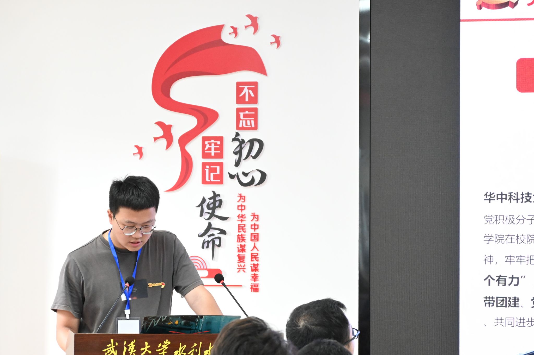研究生党建工作中的亮点。周子钰同志满怀深情地说:青年强,则国家强。当代中国青年生逢其时,施展才干的舞台无比广阔,实现梦想的前景无比光明。作为水利学子、作为青年党员、作为宣讲人,我们应该始终不忘初心、牢记使命,把论文写在祖国大地上。
