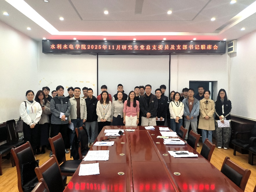 2025年11月研究生党总支委员及支部书记联席会在工学部八教8111会议室顺利召开。会议由研究生党总支学生负责人周慧明同志主持。学院党委副书记左志香、研究生辅导员许笑星、研究生辅导员万柳柳和研究生党总支委员及各支部书记参加会议。会议的主要任务是听取研究生党总支委员及支部书记联席会指导意见,并针对党支部工作中的问题展开交流。