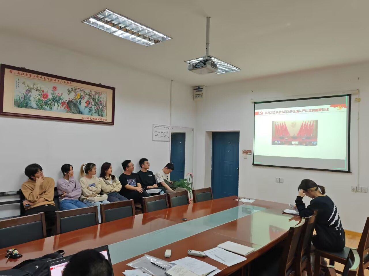 2023年10月27日晚,河流工程研究生第四党支部在工学部八教8110会议室召开10月份组织生活会,本次会议包括三项议程:一是预备党员吴苏雅同志的转正大会;二是”大力弘扬清廉守正、担当实干之风”主题党课;三是学习习近平总书记五四重要回信精神。本次会议由党支部书记刘洪华同志主持,24名正式党员、2名预备党员、4名发展对象及入党积极分子、7名共青团员参加会议。