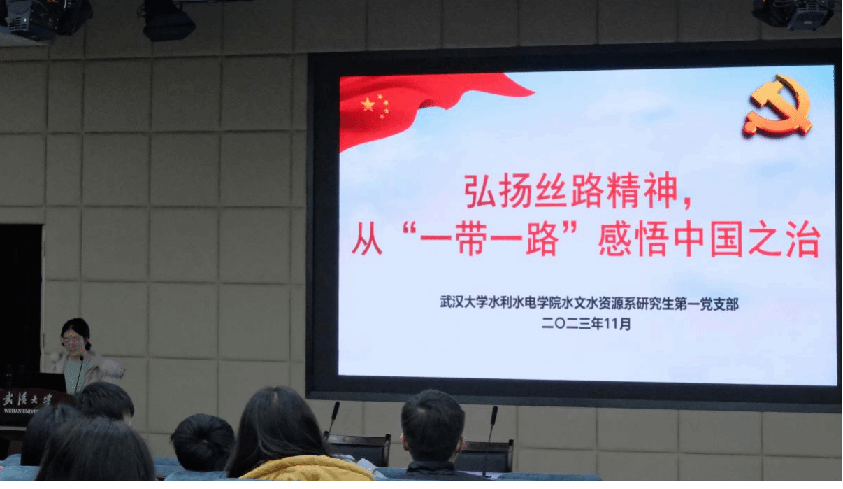 11月30日晚,水文系研究生第一党支部全体成员齐聚6教401教室,召开11月理论学习会。本次理论学习会包含三个主题:一、弘扬丝路精神,从“一带一路“感悟中国之治;二、涵养新时代中国青年的精气神;三、学习科研经费管理办法、保守国家秘密法等相关知识。会议由王新惠同志主持召开,研究生党总支苗箫雨同志参加会议。