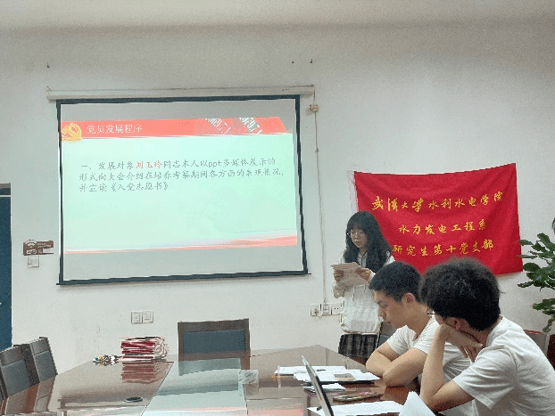 水力发电工程系研究生第十党支部全体成员在8110会议室开展了组织生活会。本次会议由党支部书记牛家辉同志主持,会议包括龚仁煌、刘玉玲同志发展事宜及理论学习会两部分。