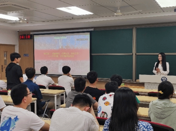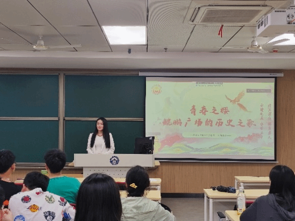 博士生宣讲团讲师田胡冰格作主题为《青春之樱:鲲鹏广场的历史之歌》的微党课分享。她从鲲鹏广场筹建缘起、雕塑设计、精神象征等方面梳理了鲲鹏广场及其周边樱花景观的发展历程和校园文脉,宣扬了青年学子搏击云天、永远腾飞的青春精神,并号召在场党员同志们为中华民族伟大复兴而不懈奋斗。