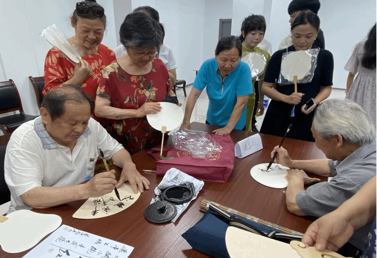 漆扇志愿活动为老年人提供了一个手工制作、交流学习的平台,丰富了老年人的文化生活。他们可以在活动中结交新朋友,分享制作经验,共同创造美丽的漆扇作品,从中获取快乐。通过志愿活动,老年人可以了解和学习漆扇制作技艺,甚至可以将其分享给身边家人,从而弘扬传统文化,助于增强民族自豪感和文化认同感,促进文化的繁荣和发展。