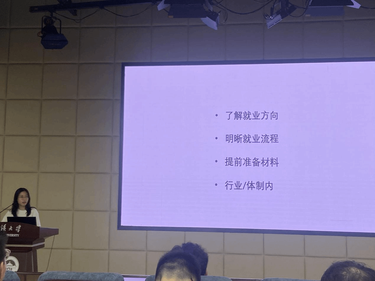 会议第二项,开展毕业生欢送活动。徐诗恬同志作为毕业生代表为大家带来就业经验分享。徐诗恬同志根据自身求职的经历为大家分享就业经验,从了解就业方向、明晰就业流程、提前准备材料以及行业/体制内四个方面进行讲述。徐诗恬同志为大家分享了就业准备事项和求职技巧,包括提前分析就业市场、做好材料准备以及面试技巧等。同时,徐诗恬同志强调调整心态非常重要,要理性认识当前的就业形势,保持自信和积极性,适时放松并正确处理心理压力。