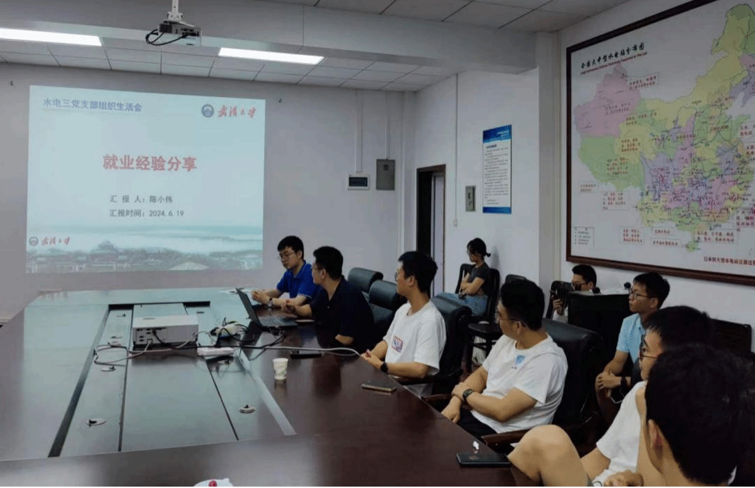 2024年6月19日晚,水力发电工程系研究生第三党支部在水机电2楼会议室召开了六月理论学习会,本次会议的主题为毕业生就业分享。旨在帮助党支部成员更好地了解就业市场动态,提高就业竞争力,同时分享成功就业经验,为他们的未来职业生涯提供指导和帮助。党支部书记林云发同志主持了会议。