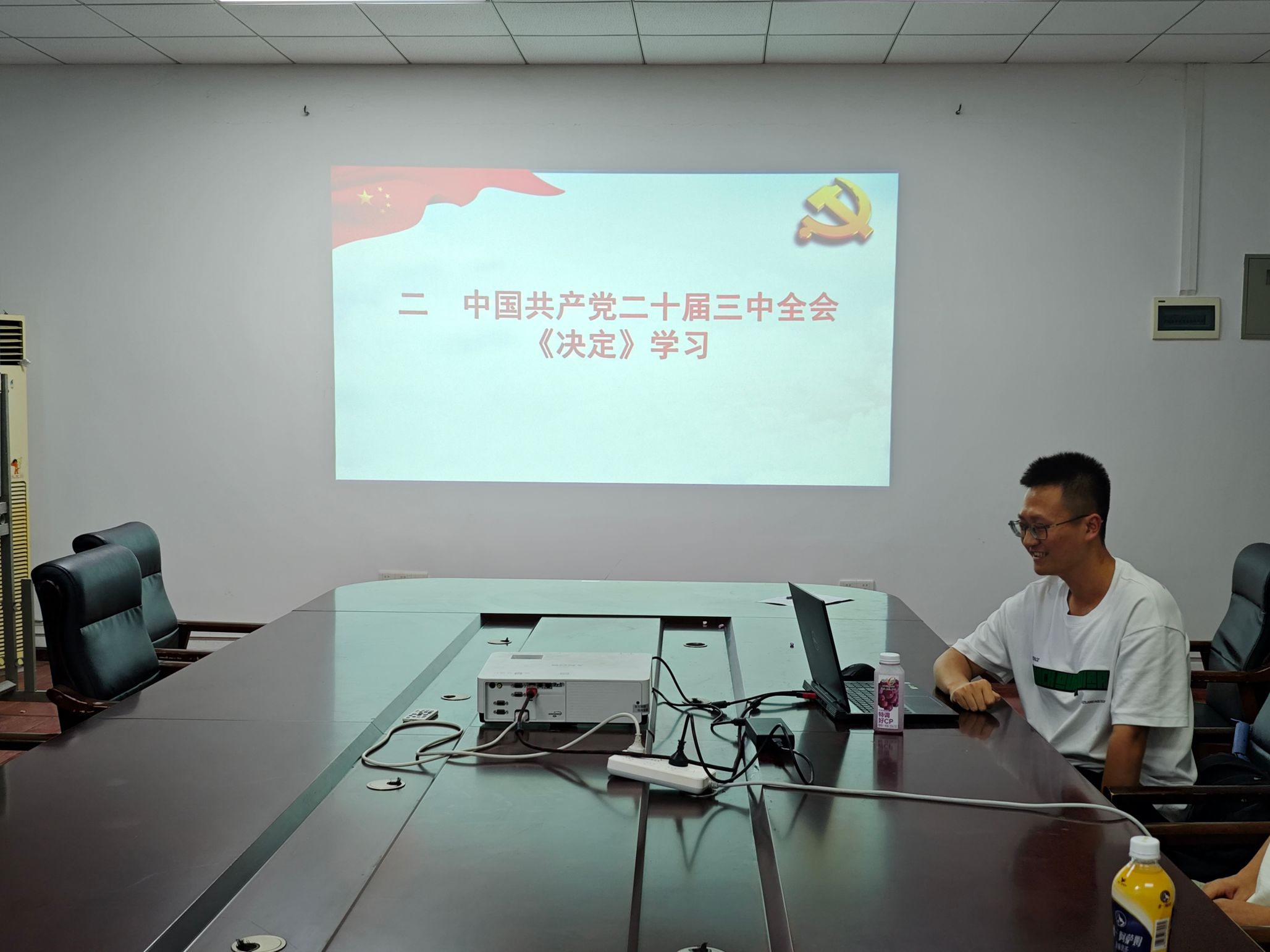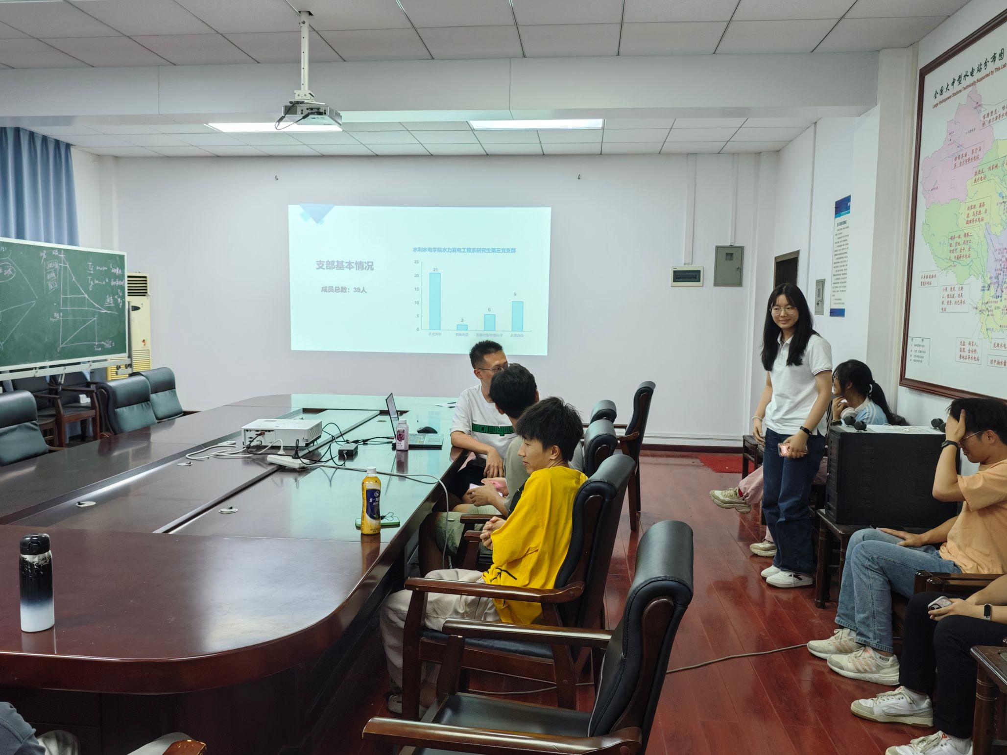 水力发电工程系研究生第三党支部九月组织生活会于水机电2楼会议室举办。本次会议的议程有:一、党支部新老成员见面自我介绍。二、由支部书记邓楷诚同志带领全体党支部成员围绕党的二十届三中全会《决定》开展党支部组织生活会理论学习。三、举行党支部委员换届选举,产生新一届支部委员会。