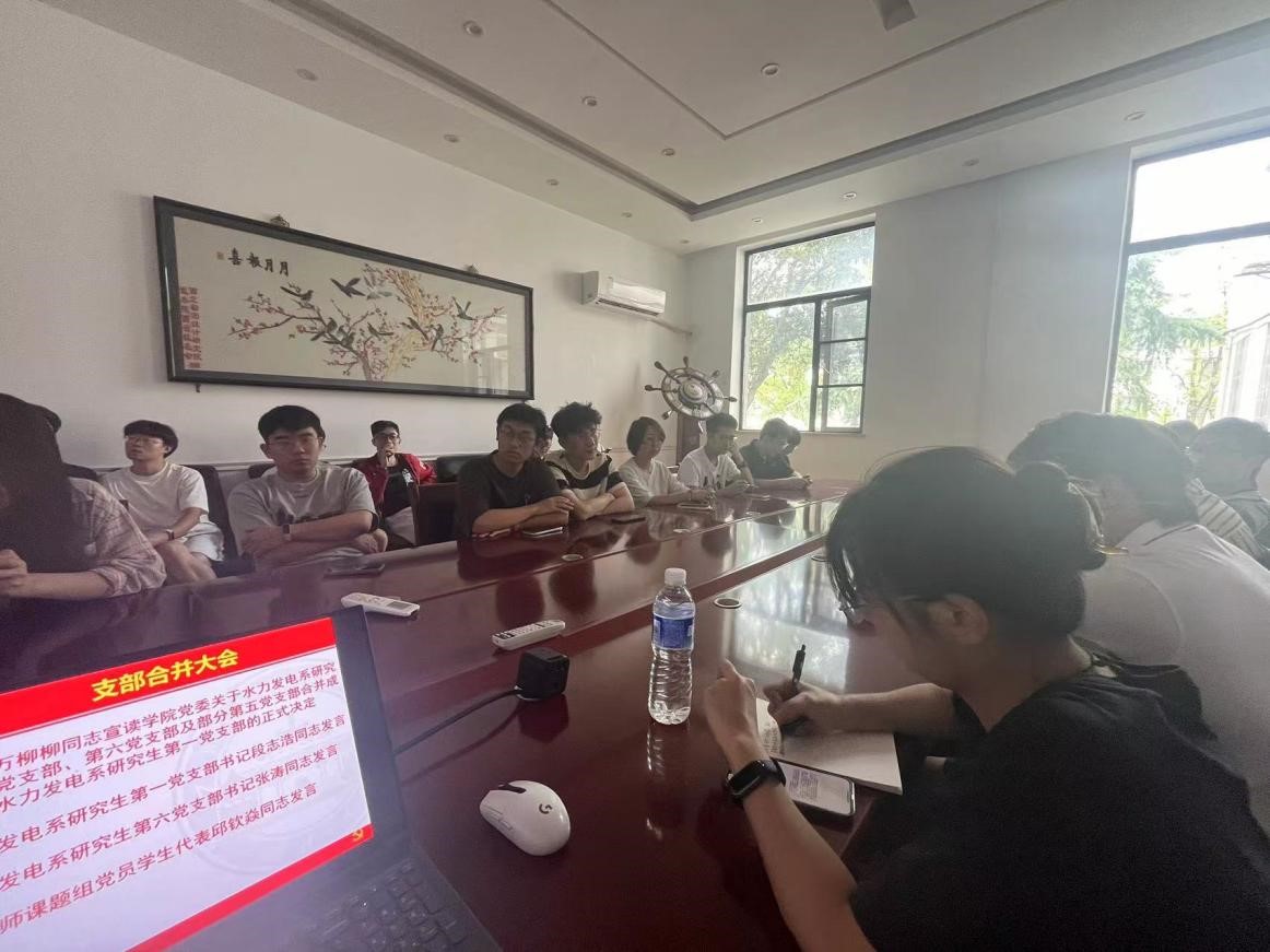 会议第一项,举办支部合并大会。原水力发电工程系研究生第一党支部与第六党支部合并为新水力发电工程系研究生第一党支部,由原支部书记张涛进行合并后支部成员组成情况的汇报,支部现有正式党员20人,预备党员3人,入党积极分子或发展对象共9人,其他未提交入党申请书的成员4人,共计36人,到会30人,其中党员18人,非党员12人。