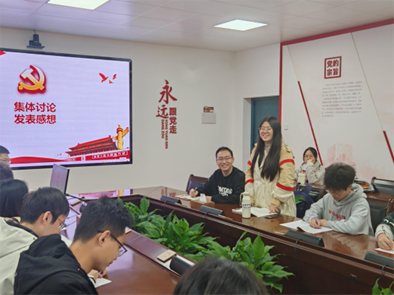 会议最后,与会成员开展集中讨论,发表感想,水利四支部宣传委员蔡闻达做了总结发言,他表示新时代新征程,作为水利学子,我们要不断提升科研攻关和工程实践能力,激扬青春,共逐科技强国梦,为实现中华民族伟大复兴贡献自己的力量!