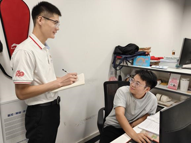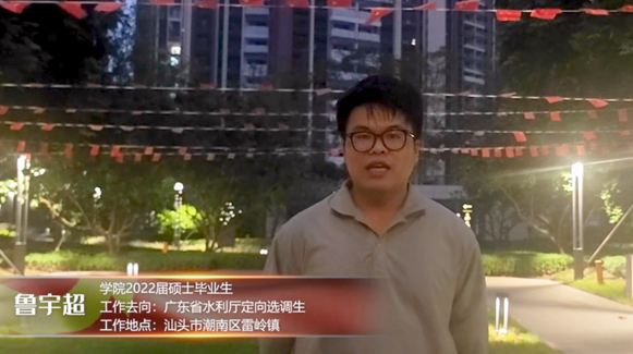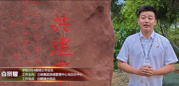 随后,支部成员线上联系采访了学院2024届硕士毕业生袁景耀及2022届硕士毕业生鲁宇超,了解他们毕业后的工作情况。毕业后袁景耀加入了三峡集团,在白鹤滩水电站真抓实干,保障世界最大清洁能源走廊运行安全,点亮万家灯火。而鲁宇超响应国家需求,在广东省汕头市雷岭镇松林村担任村主任助理,扎根基层,为全面建设乡村振兴,加快社会主义现代化建设贡献力量。采访结束后,在两位毕业生的后期配合下,录制了献礼华诞祝福视频。