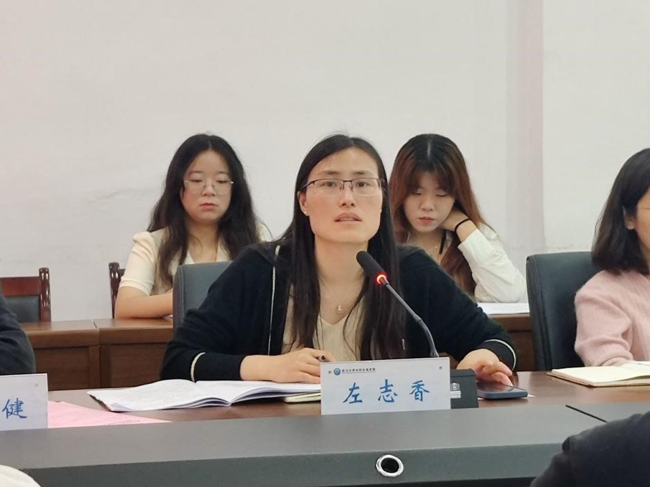 左志香老师总结作总结讲话。她表示,成立院研究生会功能型党支部是在学院标杆院系创建培育背景下,学院党委推进共青团系统党的建设、重视学生会组织改革、发挥学生党员先锋模范作用的探索实践。在高校推进“三全育人”工作体系中,研究生会作为一个特定的治理架构具有独特的角色定位和作用,在发挥思想引领和组织育人功能方面有特殊优势。期待功能性党支部成立之后,能够更好的组织研会工作,为同学们提供更好的服务。一要加强思想引领作用,深入学习习近平新时代中国特色社会主义思想;二要发挥好战斗堡垒作用,对照党的期望、团的要求和广大研究生需求,不断提升组织力、引领力和服务力;三要充分发挥育人功能和桥梁纽带作用,凝聚全院研究生同学共同成长成才,为中华民族的伟大复兴贡献青春力量。