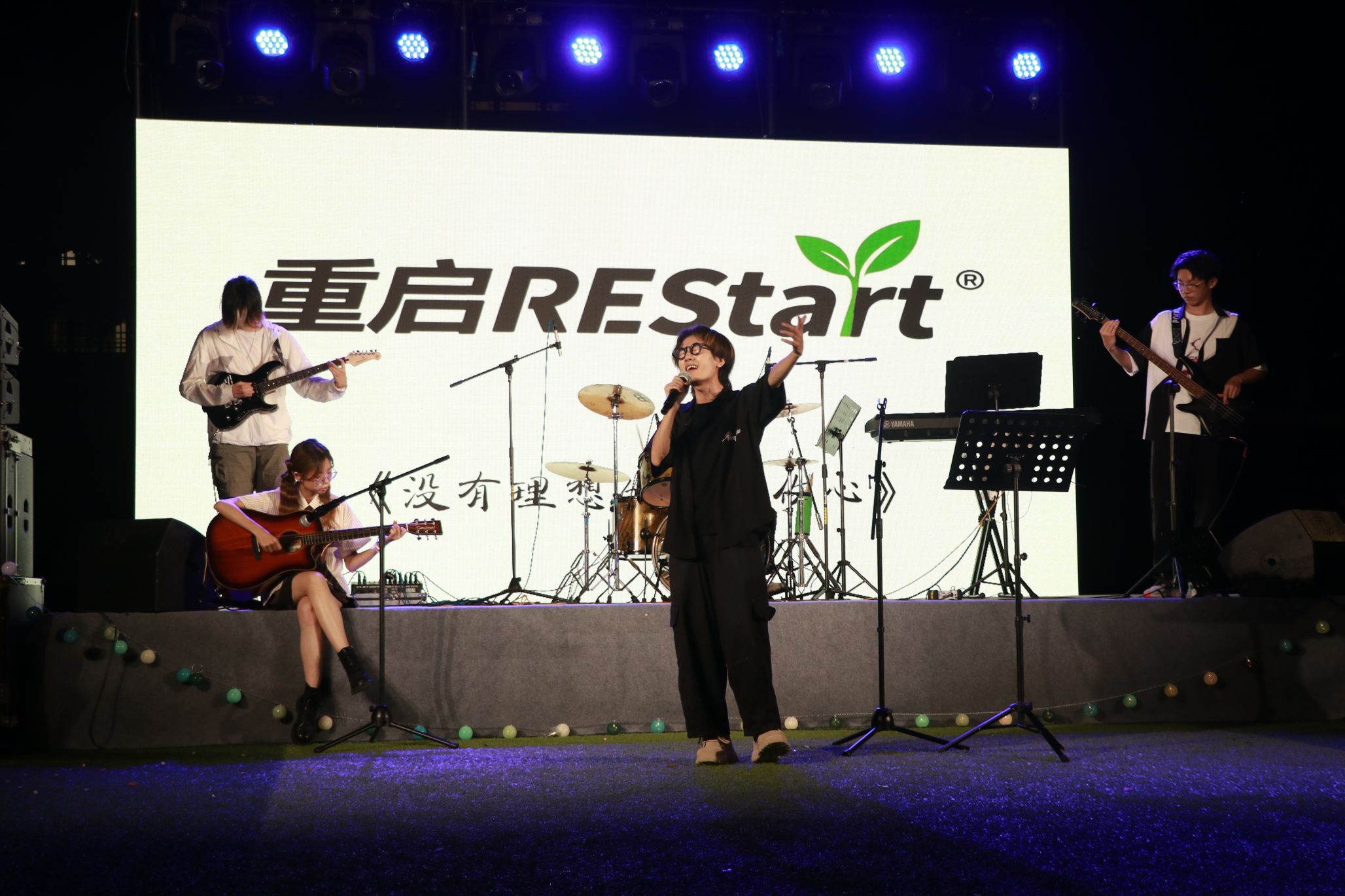 音乐节的终章,由重启REStart乐队震撼收尾。《転がる岩、君に朝が降る》《鲜花》《没有理想的人不伤心》 三曲连发,摇滚的呐喊直击灵魂,诠释着面对困境的勇气、对美好的向往与理想的坚守。强劲的节奏、充满能量的歌声点燃全场最后的激情。观众高举双手,奋力跳动、呐喊,将毕业的宣言与青春不灭的火焰,化作这场视听盛宴最璀璨的句点。
