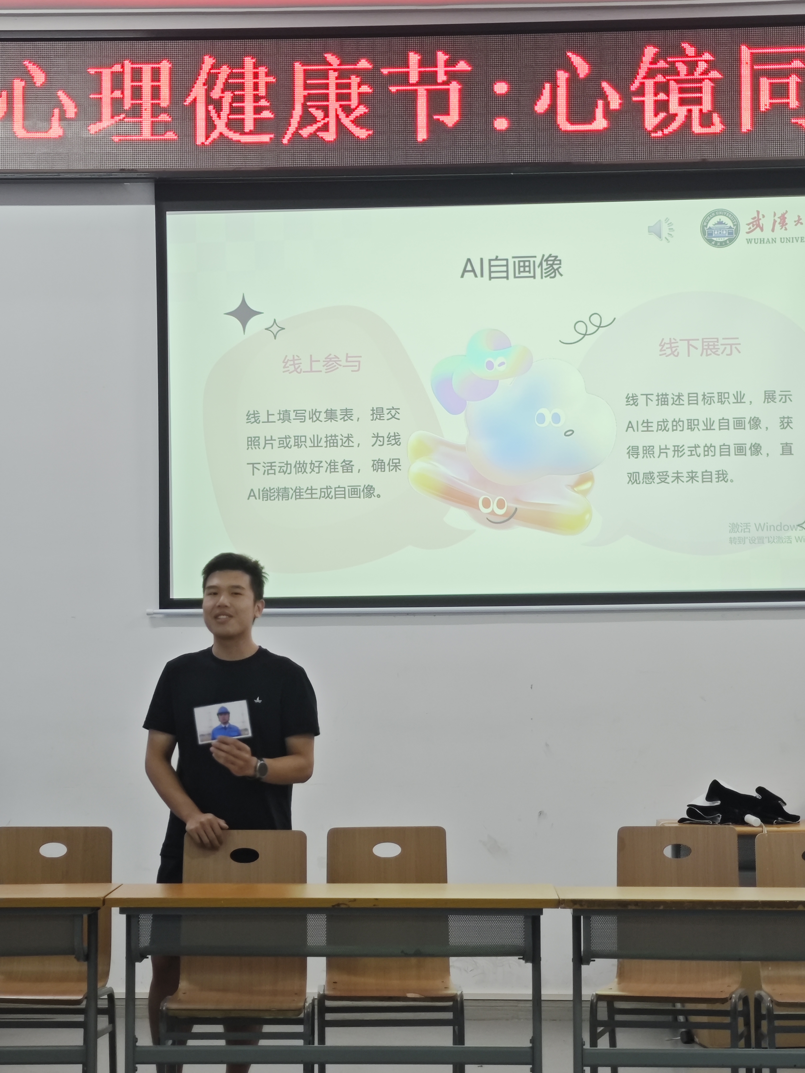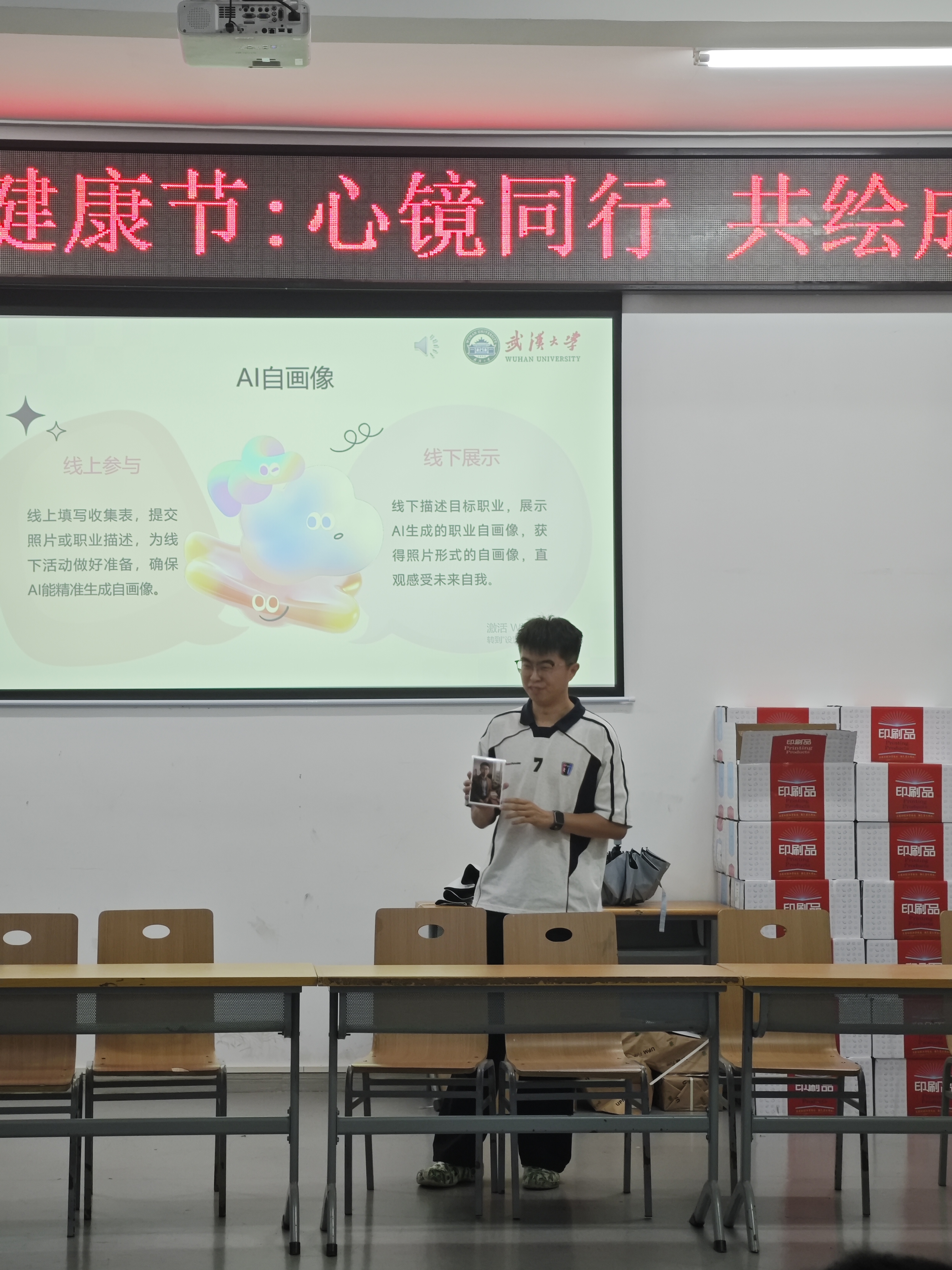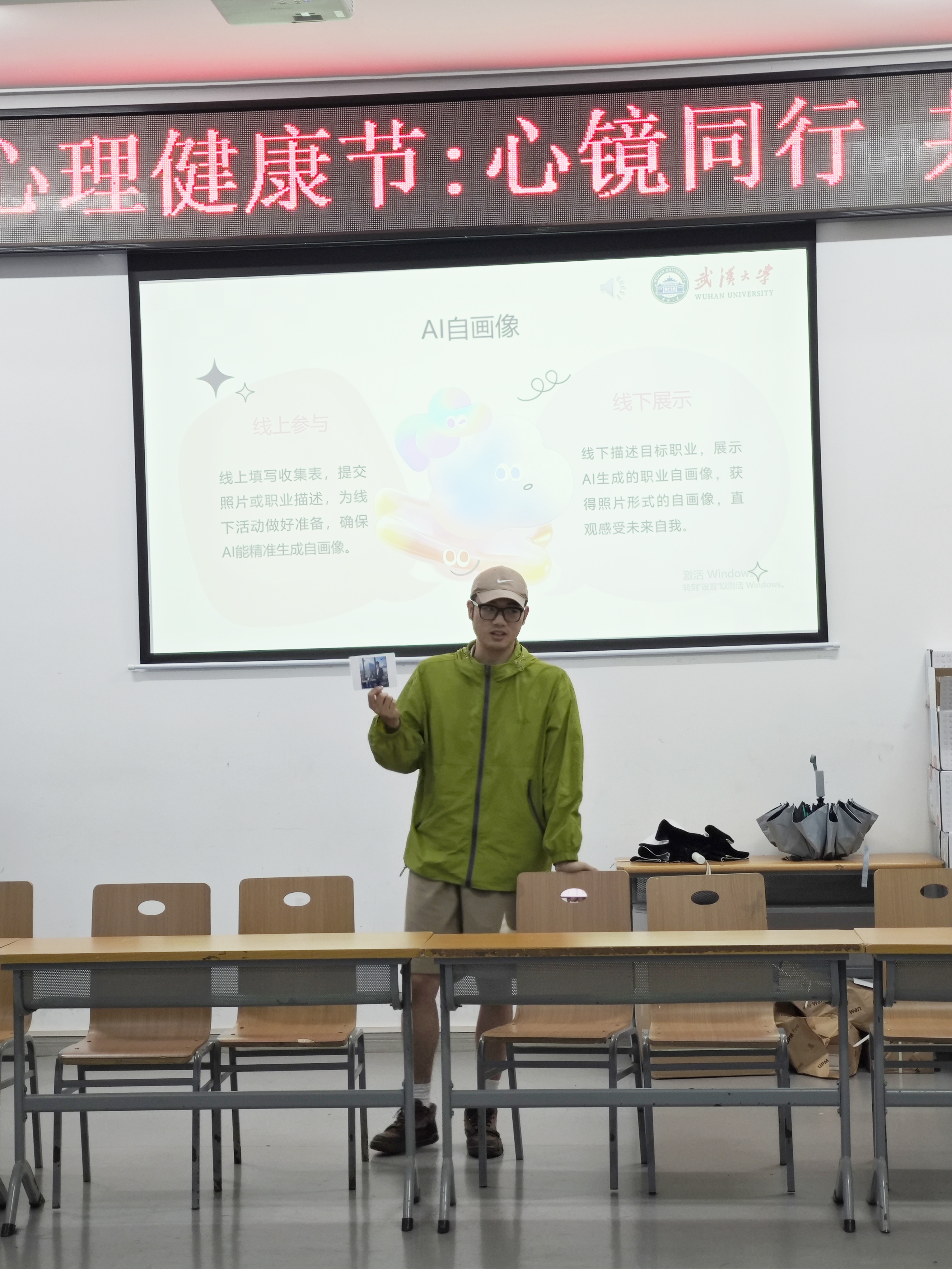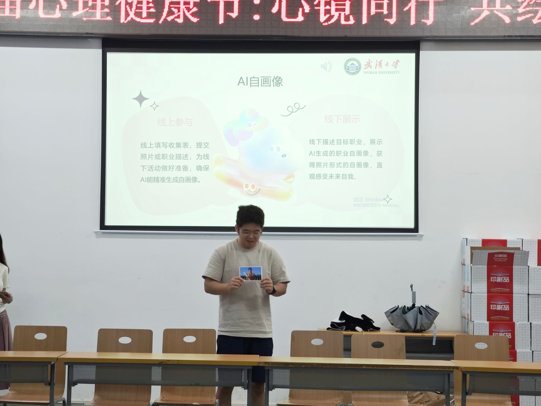 党委副书记左志香老师、研究生辅导员万柳柳老师莅临指导,吸引了来自土木建筑工程学院、城市设计学院、法学院、电气与自动化学院等多个学院的40余位研究生热情参与。活动围绕“认识自我”的主题,精心设计了互动游戏、AI画像体验和手工创作三个主要环节。现场气氛热烈,同学们参与度非常高。