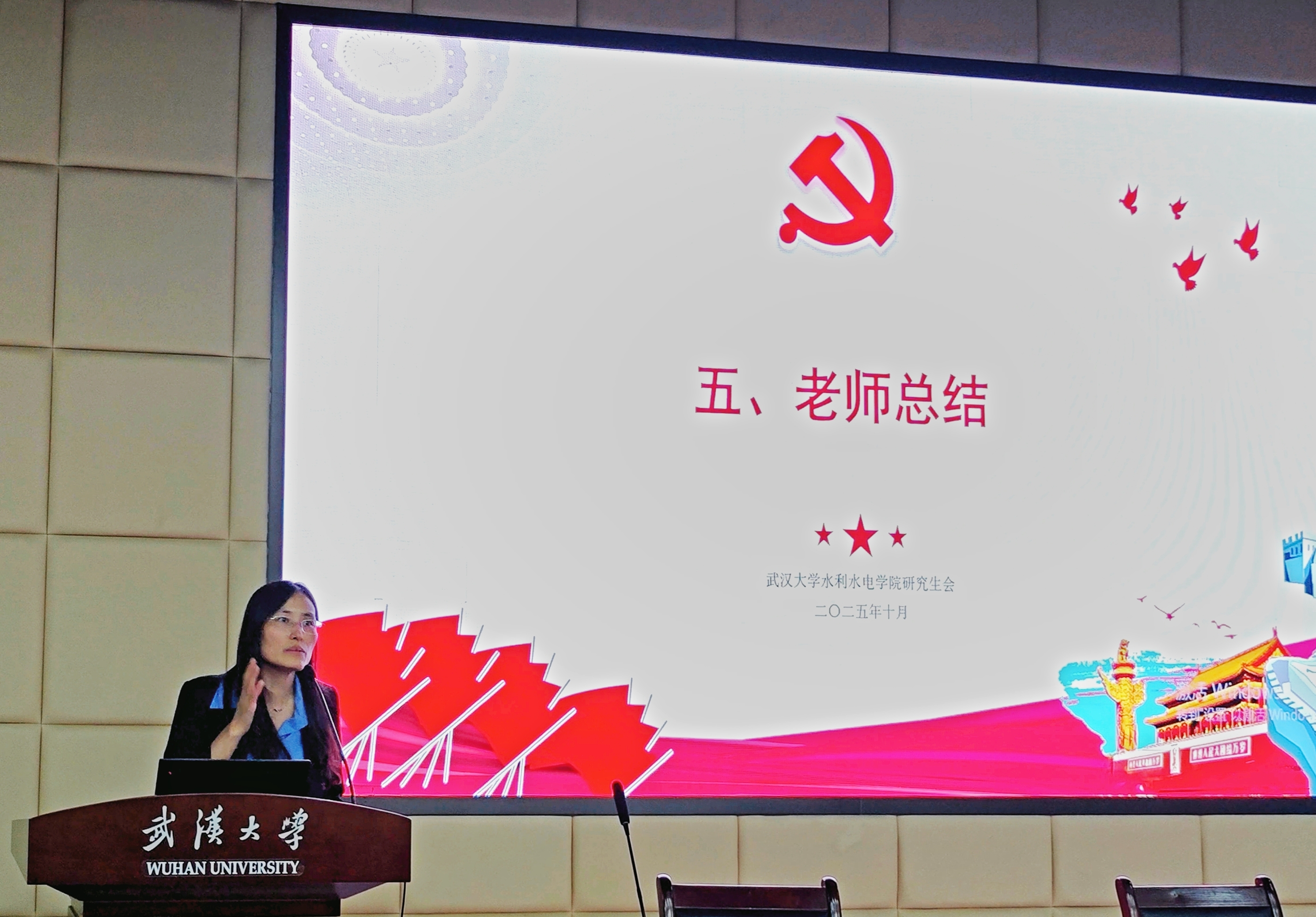 会议最后,院党委副书记左志香老师作总结讲话。她首先对新成员的加入表示热烈欢迎,并对研会未来发展提出四点殷切期望:一要“强基赋能”,新成员需尽快融入角色、提升本领,在实践中成长;二要“传承精神”,持续弘扬“传承、互助、团结”的优良传统,凝聚团队力量;三要“内外有序”,坚持内部沟通解决问题,共同维护学院集体声誉;四要“修心砺行”,常怀开放感恩之心,在思考与实践中遇见良师益友,成就更好的自己。