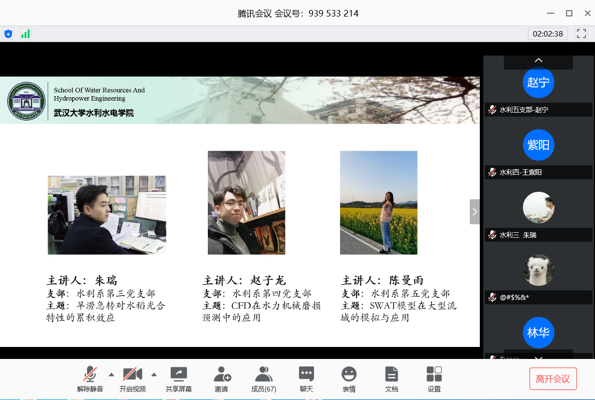 最终,博士生陈曼雨以精彩的分享征服了现场评委及观众,被评为本期弘禹论坛优秀主讲人。依据评分结果,研究生水利系第三党支部和研究生水利系第四党支部被评为优秀承办党支部。