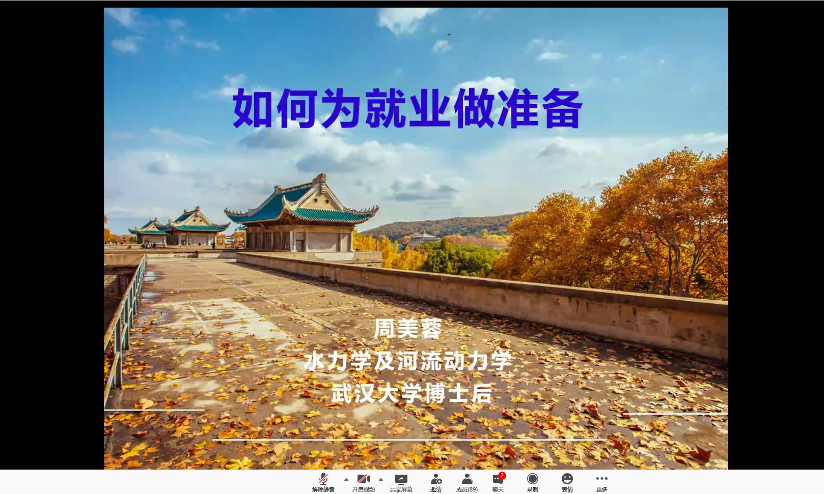 博士生毕业经验交流会以腾讯会议的形式召开,院党委副书记龚文德,研究生辅导员左志香、李响,博士生分会组织代表及90多位研究生参会。