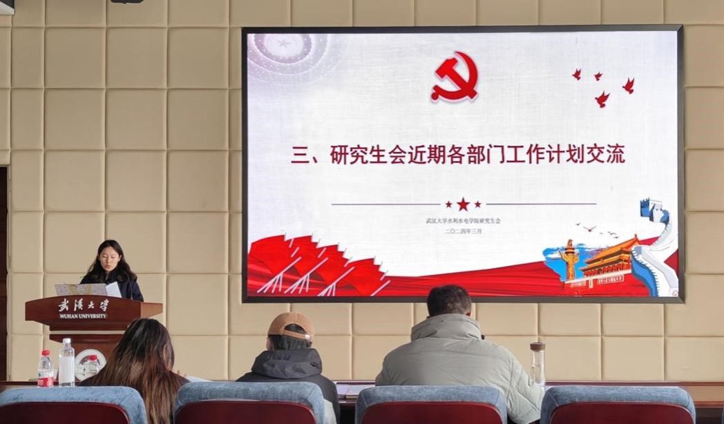 研究生会各部门负责人作第二学期工作规划报告。研究生会办公室、宣传部等六个部门的负责人从常规工作、活动安排等方面依次介绍了本部门第二学期的工作计划。