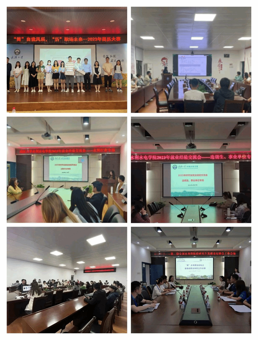 组织广泛涉及各行业的分专业就业经验交流会,分为水利行业专场,银行、互联网、房地产专场,选调生、事业单位专场,博士生专场; 组织简历大赛; 组织“研”水问道——第二届全国水利类院校研究生发展论坛; 组织就业约稿活动,形成《研究生就业约稿集》等 |