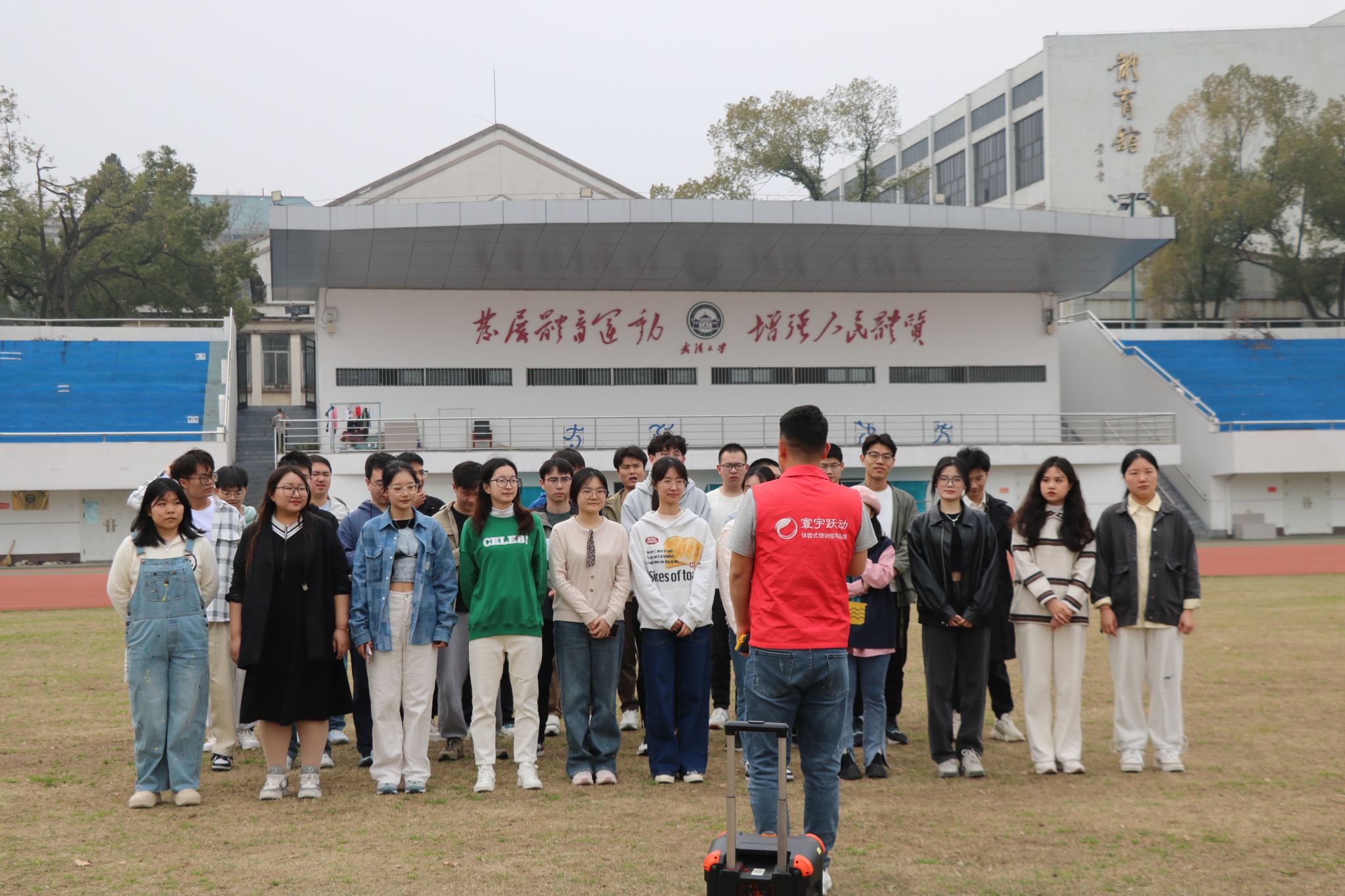 研究生会在工学部操场举办了一场精心策划的素质拓展活动。活动从下午一点半开始,历时近四个小时,共有近三十名研究生踊跃参与。