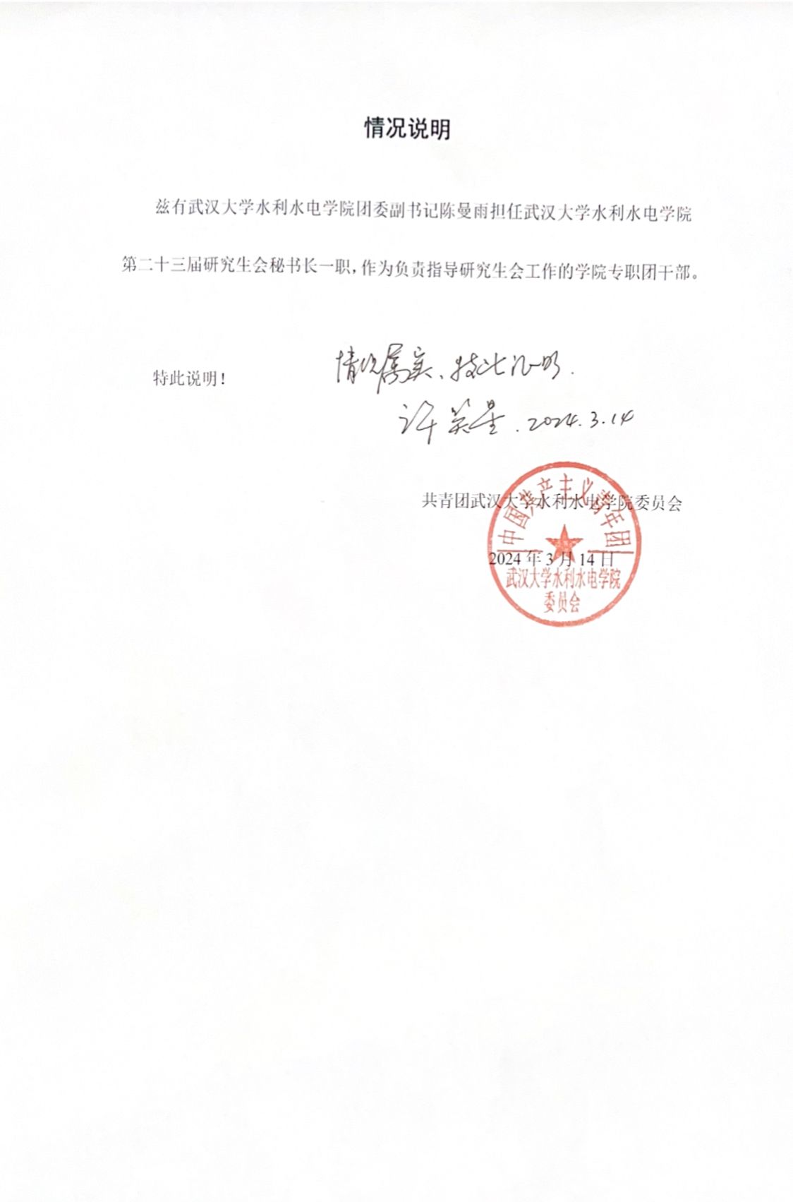 兹有91黑料 团委副书记陈曼雨担任91黑料 第二十三届研究生会秘书长一职,作为负责指导研究生会工作的学院专职团干部。