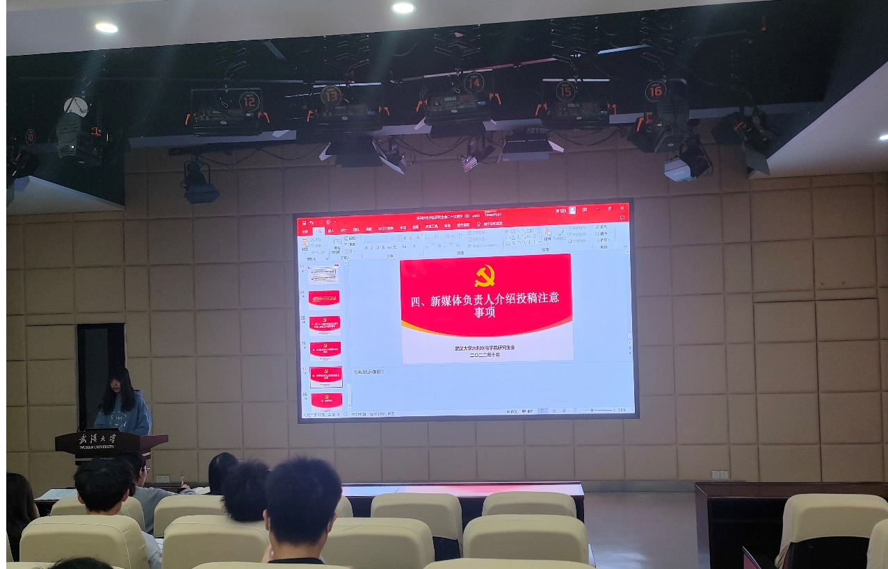 院研究生会新媒体宣传中心负责人熊诗琪同学讲解“水研珞珈”公众号推文稿的相关注意事项