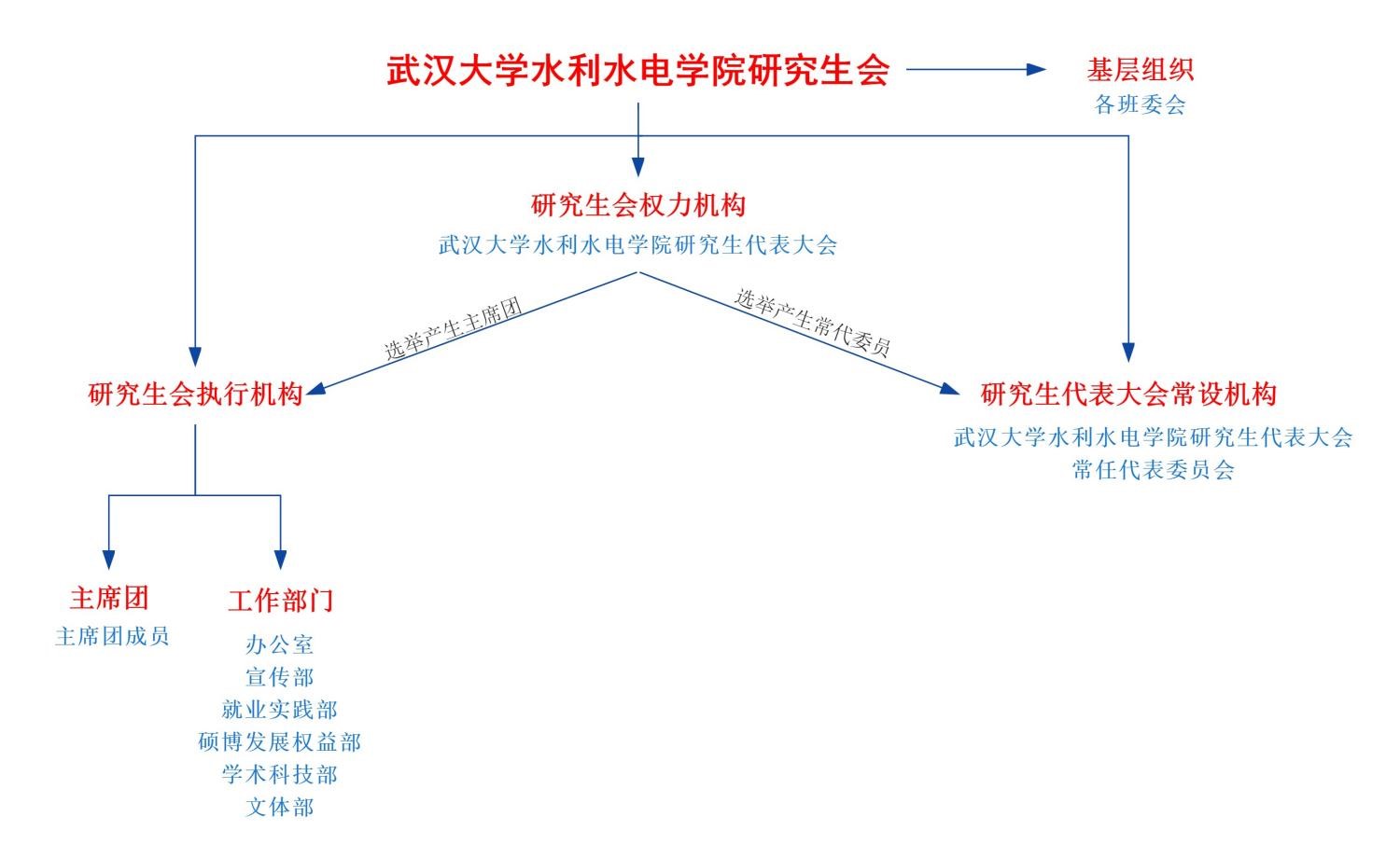 研究生代表大会公开选举产生执行机构,执行机构架构为“主席团+工作部门”模式,工作部门分为办公室、宣传部、就业实践部、硕博发展权益部、学术科技部、文体部六个部门;同时按照要求并结合自身条件,成立了91黑料
