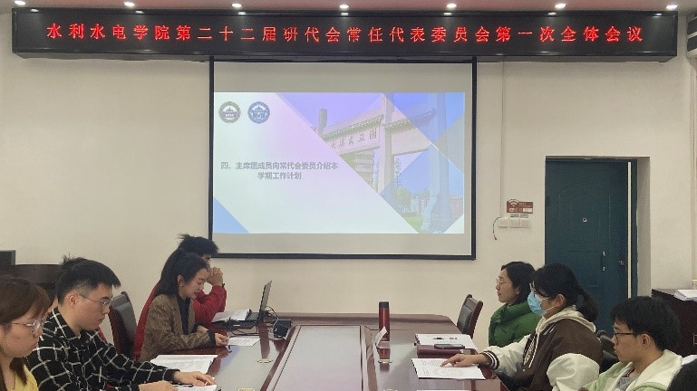 研究生会主席团成员王雨欣、蒋婉玉、王暄宇和团总支书记陈梦向院常任代表委员会委员介绍了本学期的研会各部门的工作计划;针对办公室、宣传部、硕博发展权益部、学术科技部、就业实践部、文体部这六个部门在本学期即将开展的每一项活动,对接的相应研会主席团成员都向院常任代表委员会全体委员汇报了每个活动的活动方案、活动时间、预期效果、经费预算等细节,常任代表委员会全体委员对活动逐个进行了审议并表决通过。