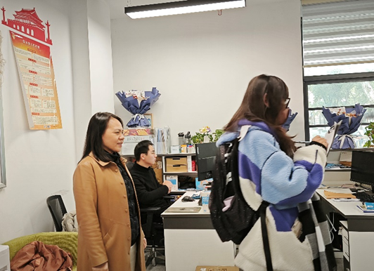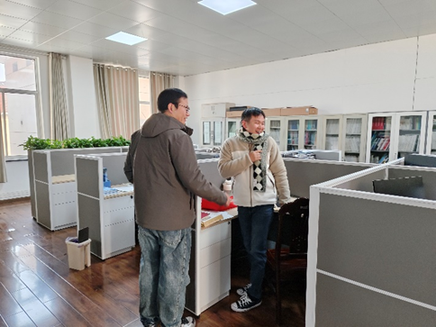 在此次走访活动中,老师们与同学们亲切交谈,答疑解惑,整个实验室充满了和谐与欢乐。在交谈中,老师与同学们深入交流,从专业学习、实践经历、科研训练等多个方面探讨了如何更好地提高自己的能力及知识水平,还将自己的经验分享给同学们,帮助他们更好地提升科研能力,解决生活问题。活动在学院研究生辅导员许笑星老师、万柳柳老师、刘萍老师和兼职辅导员张玎玲带领下有序开展。