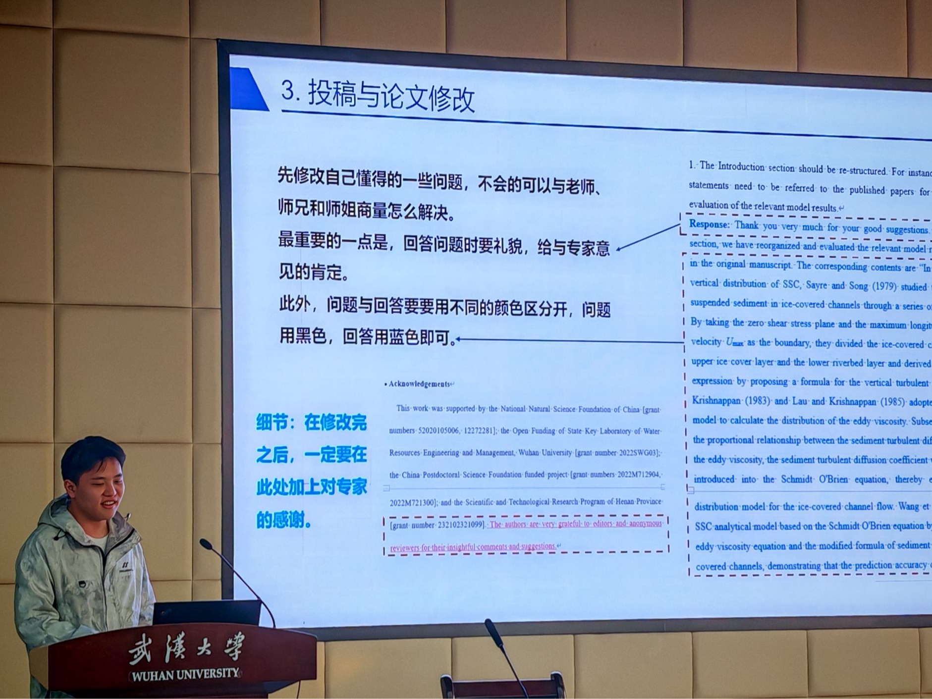 6401报告厅顺利举办。此次活动共邀请到孙蓝心等10位2023-2024学年研究生国家奖学金获得者作为优秀嘉宾,来分享科研写作的经验与心得。研究生辅导员陈曼雨、许笑星、万柳柳老师出席本次活动。