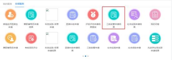 (4)提交申请后,在“全部服务”里点击“三助助管申请结果”(请注意,这里是回到全部服务,点击“三助助管申请结果”这个服务,不是之前的“三助助管申请”)。点击右侧的“上传协议”,将签字盖章的助管协议扫描后上传(协议及填写样式见附件)。