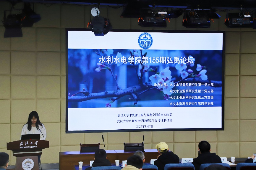 工学部第六教学楼6401室举行。本次活动邀请水文与水资源系张权、艾学山、董前进、刘德地老师作为评委老师,学院党委副书记左志香老师和研究生辅导员陈曼雨、许笑星老师作为嘉宾出席活动。本次论坛主讲嘉宾为程潜、黄绳和贾晓琳,杨怡汀同学主持活动。