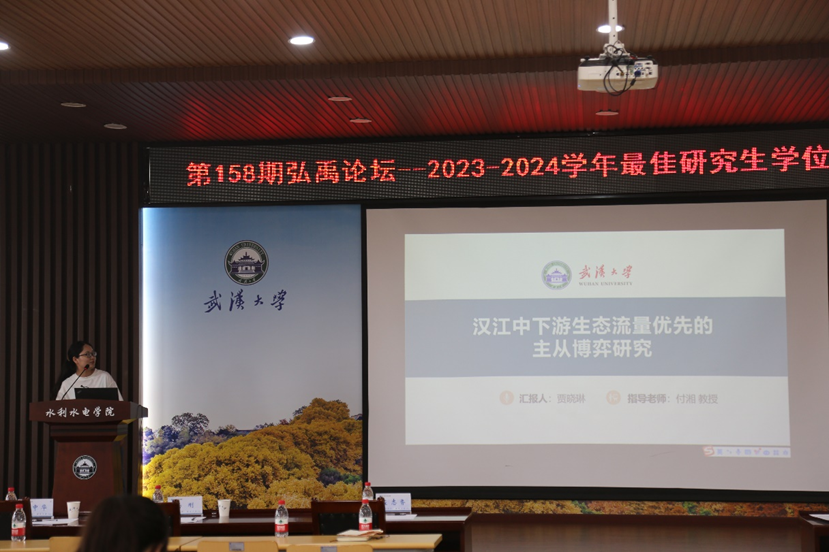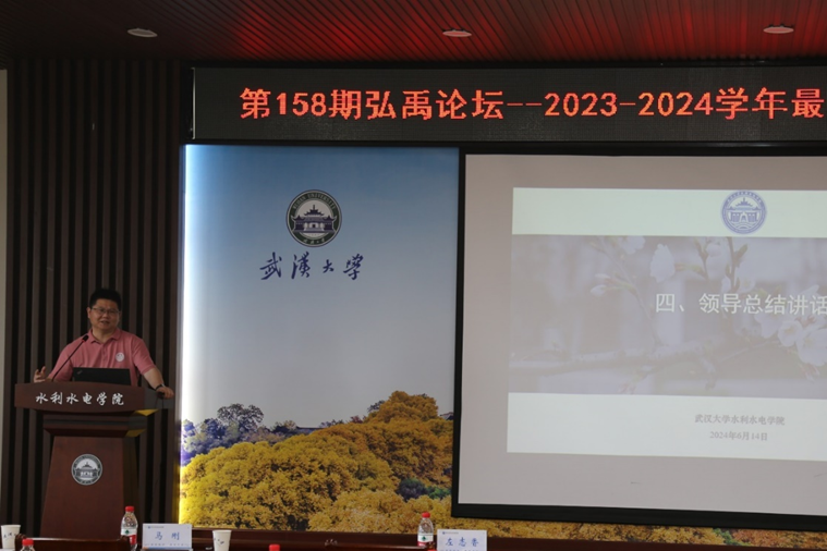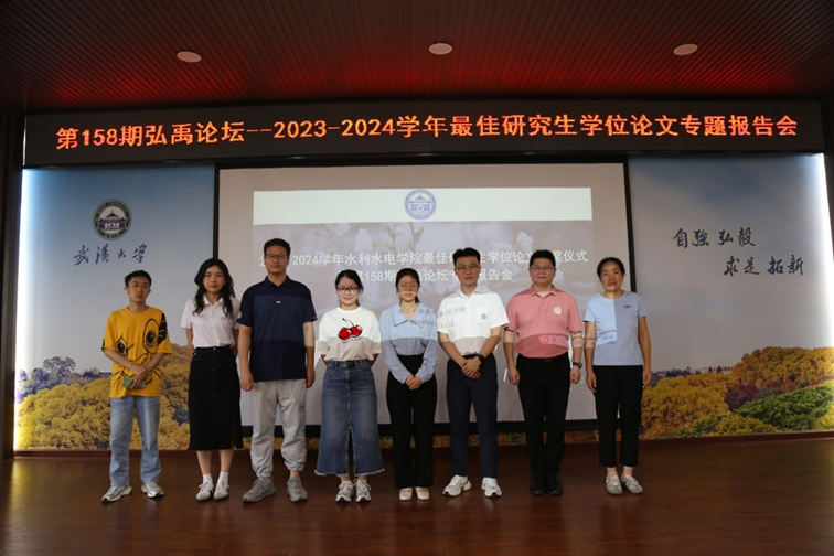 最佳研究生学位论文颁奖仪式暨第158期弘禹论坛专题报告会成功举办。出席本次活动的有院党委副书记左志香老师、副院长伍靖伟教授、副院长夏军强教授、副院长马刚教授、水利工程系党支部书记查元源副教授、河流工程主任杨中华教授、水力发电工程系副主任程勇刚副教授、水文水资源系付湘教授,研究生教学秘书、研究生辅导员。2025届毕业生参与活动,会议由余懿凡同学主持。