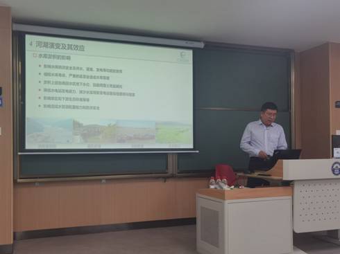 姚所长本次讲座主要分六个部分,系统地向同学们讲述长江河湖保护治理的相关知识。姚所长首先介绍了长江的河湖概况;接着以时间为主线,从地质时期到人类文明时期以及近百年的演变来讲述长江河湖的历史变迁;随后讲解了长江水沙特征及变化趋势、河湖演变及其效应,引出河湖保护与修复的政策;最后结合自身的工作经验进行总结,呼吁学院广大师生投身长江河湖保护与治理工作中。现场多位同学就讲座内容踊跃提问,姚所长都一一进行解答,现场氛围十分热烈。