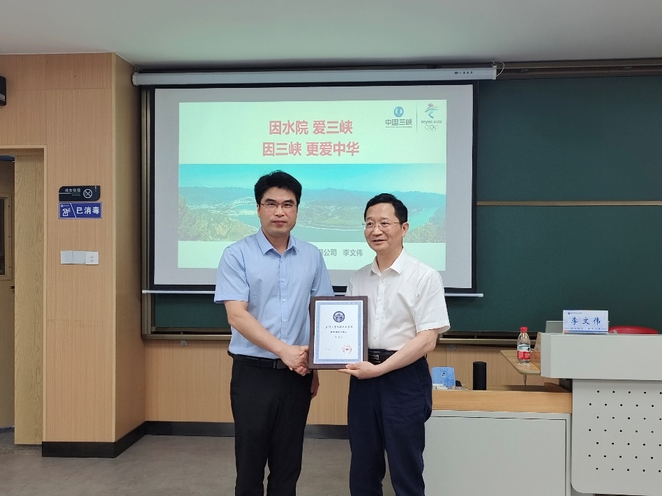 建院70周年系列活动“校友讲坛”第四讲成功举办,“武大水院”哔哩哔哩直播间同步进行网络直播。学院1982级校友、中国长江三峡集团有限公司科技创新部主任李文伟教授级高级工程师作为主讲嘉宾,深情讲述水院情、三峡缘。来自线上线下200余位师生参加了报告会,学院党委书记周伟教授主持报告会,并为李文伟主任颁发校友讲坛纪念证书。