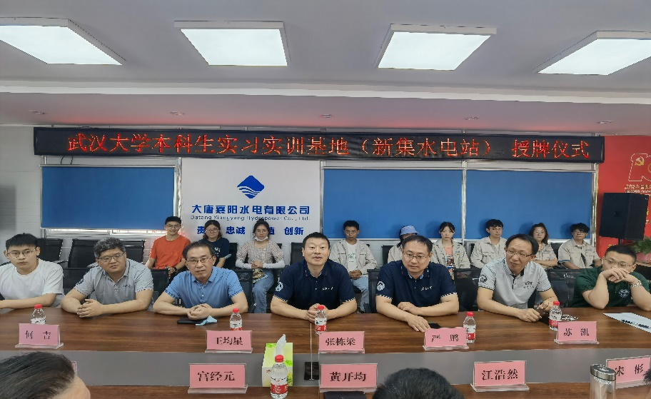-大唐襄阳水电有限公司本科生实习实训基地揭牌仪式。汉江国投党委副书记、董事黄开均、大唐襄阳水电有限公司董事长宫经元、副总经理宋彬、江浩然等热情接待了我院师生一行。